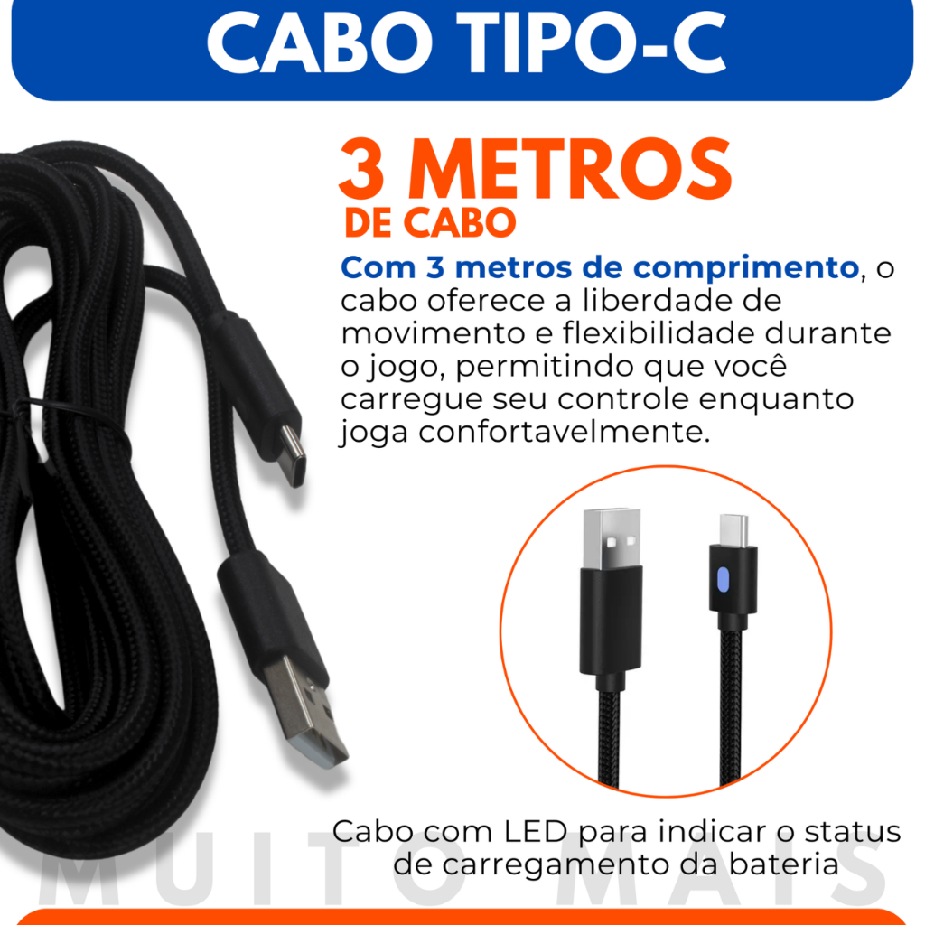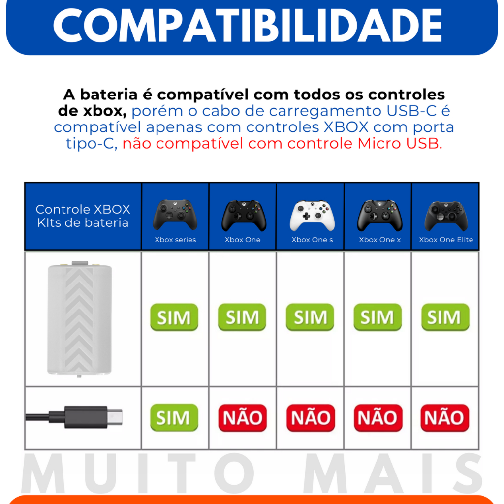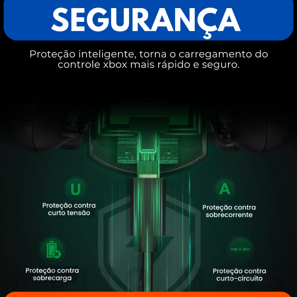 Bateria Para Controle Xbox Séries S X 1200mah Cabo Carregador 3 Metros