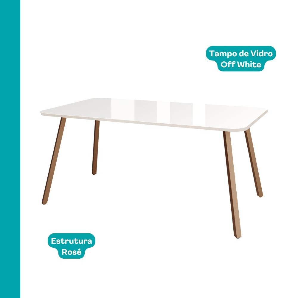 Conjunto Sala de Jantar 6 Cadeiras Capri Carraro Off White e Rosê