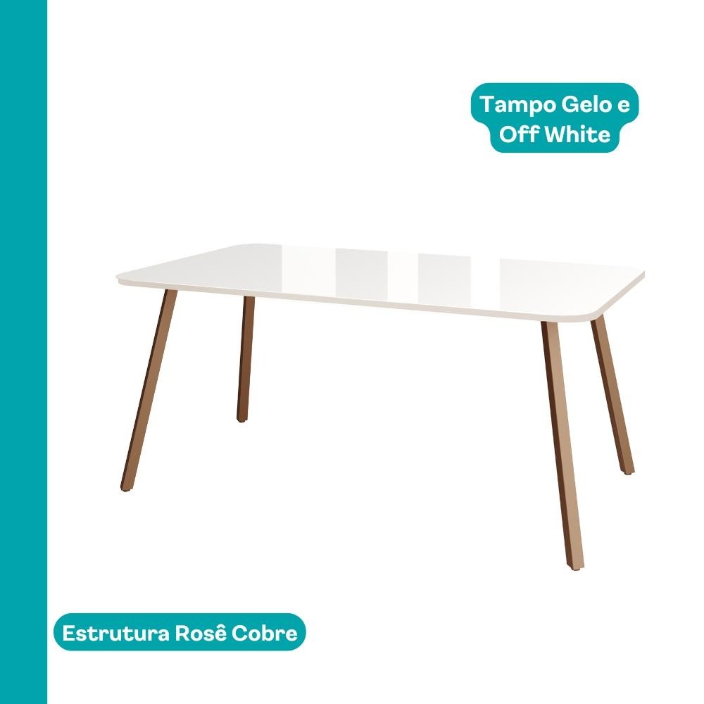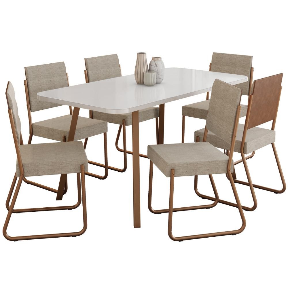 Conjunto Sala de Jantar 6 Cadeiras Barcelona Carraro Gelo Areia Rosê