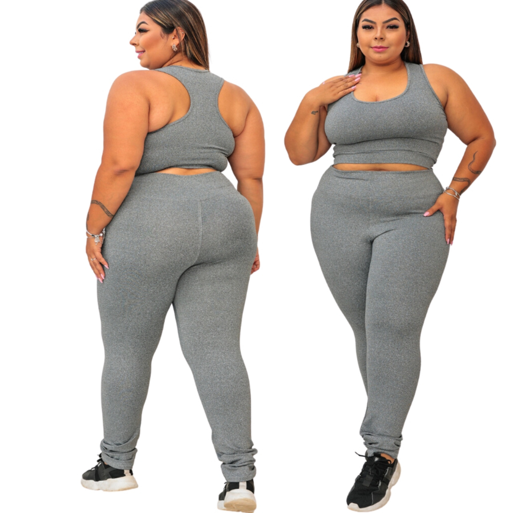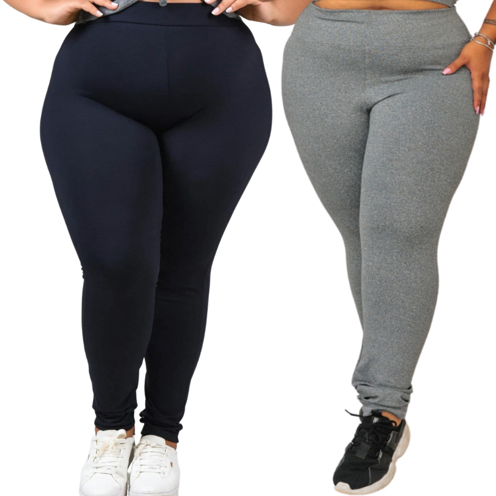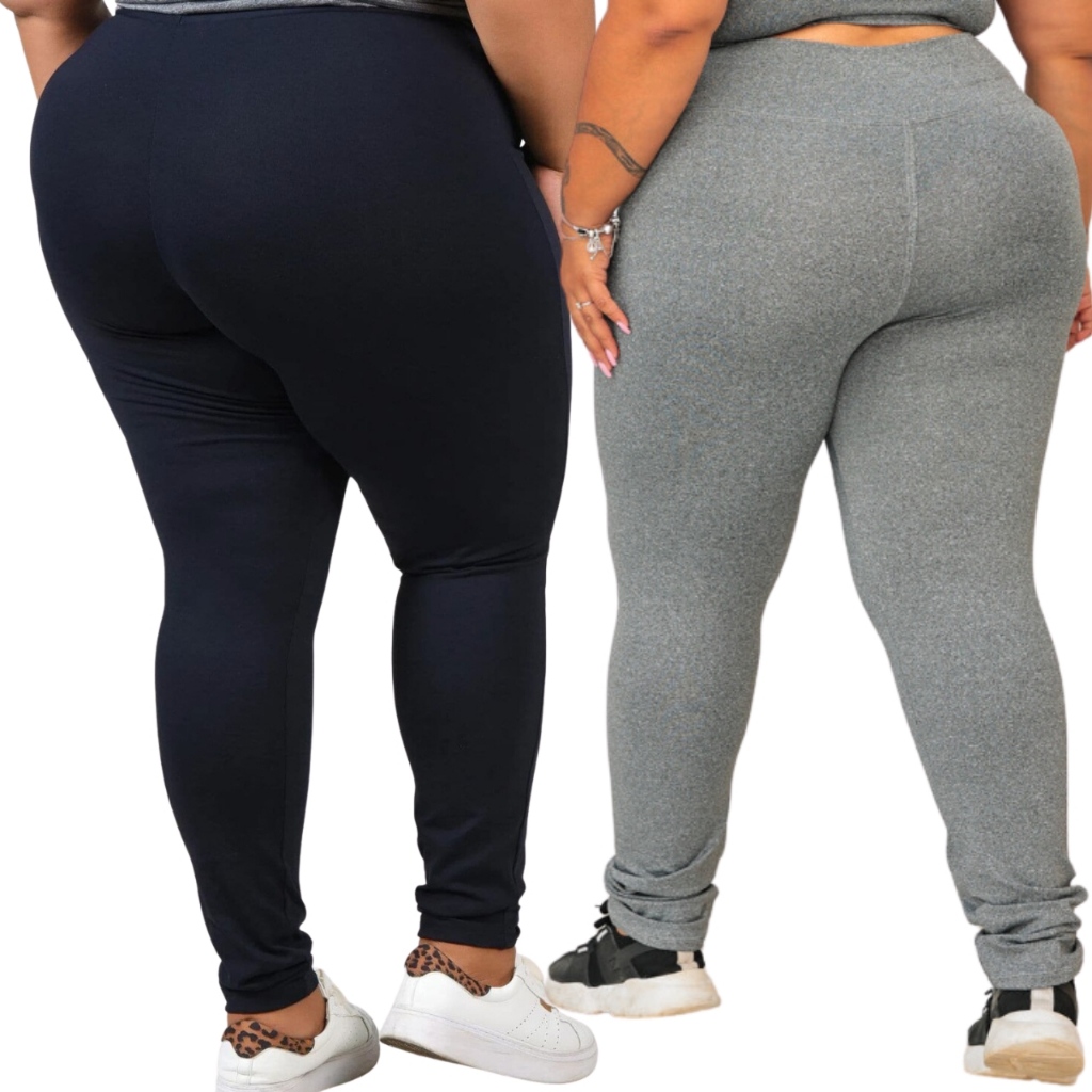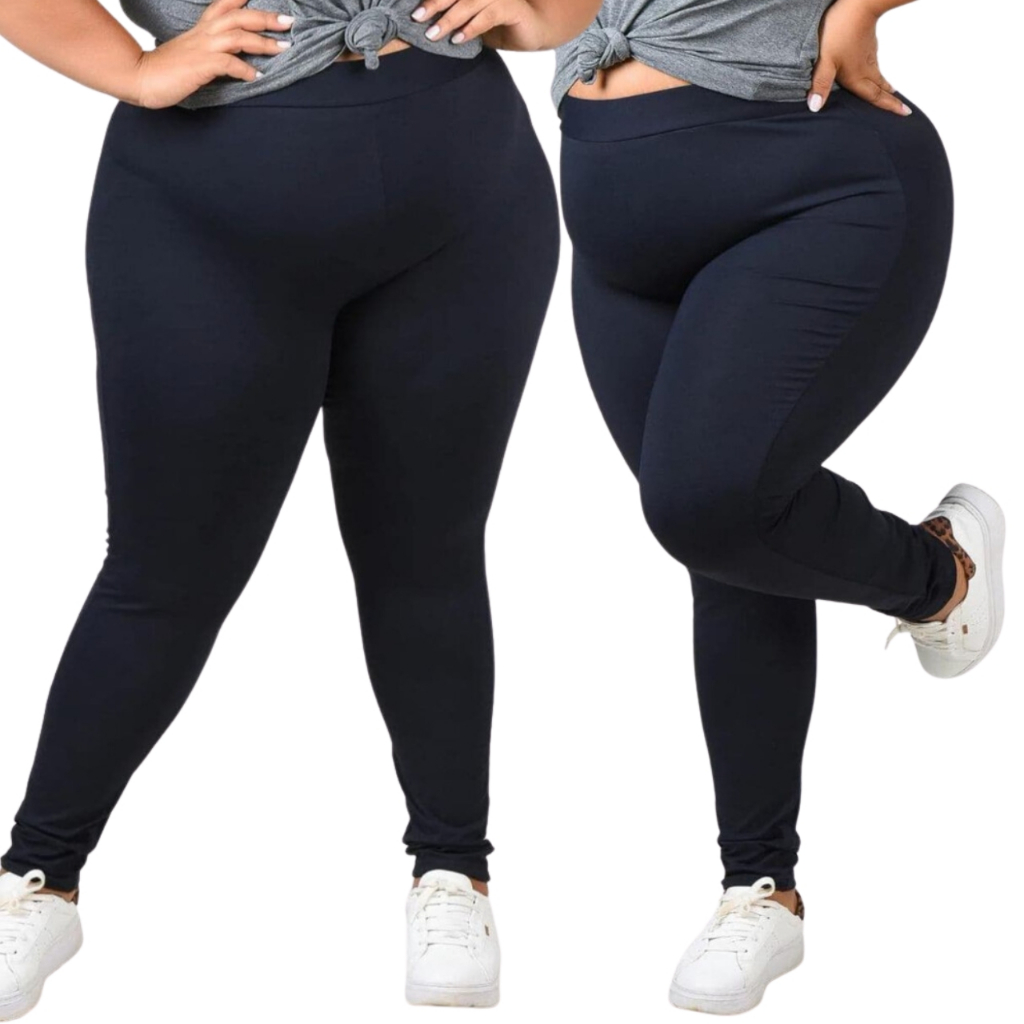 Kit 2 Calças Legging Plus Size Feminina Zero Transparência Leg Costura Reforçada