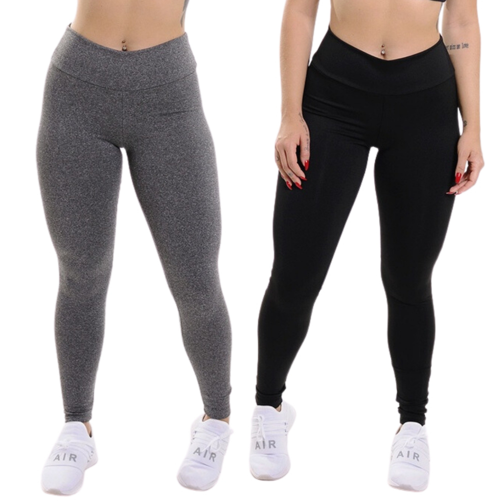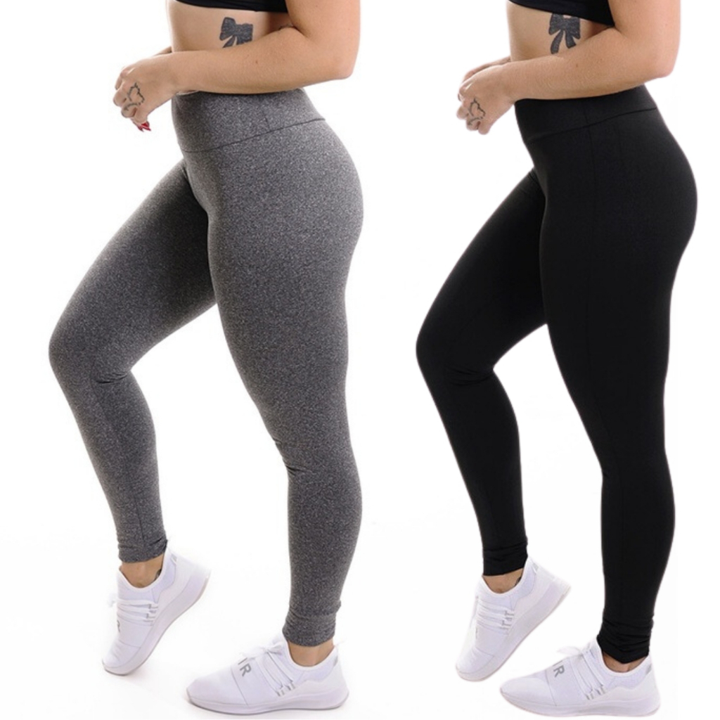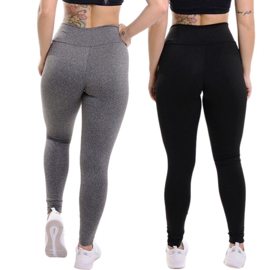 Kit 2 Calças Legging Feminina Leg Suplex Cintura Alta Tecido Grosso Costura Reforçada Fitness Levanta Bumbum