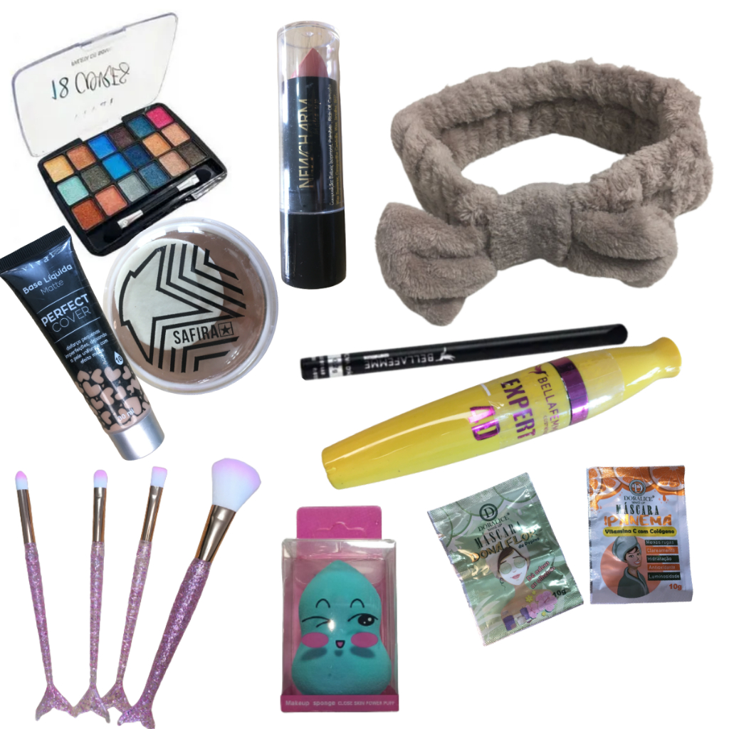Kit maquiagem completo + faixa olhos rosto base e pó mascara presente amigo secreto