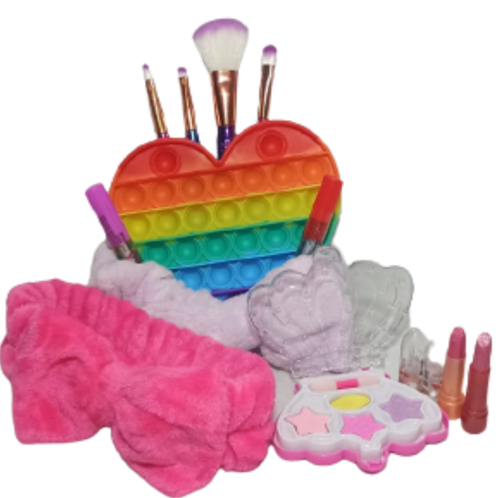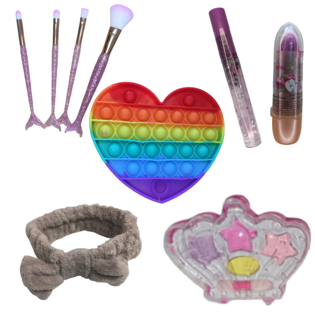 Kit maquiagem infantil presente dia das crianças sombra faixa e pop it