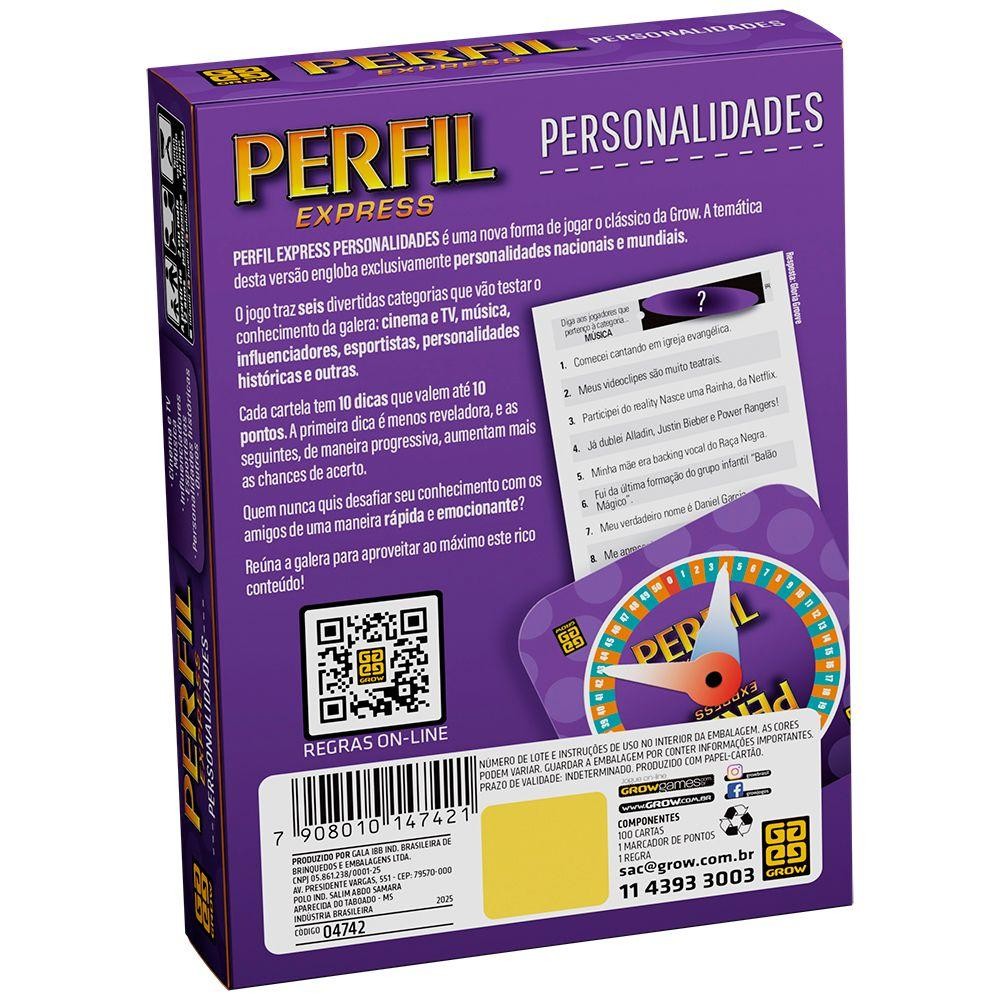 Jogo Perfil Express Personalidades - Grow
