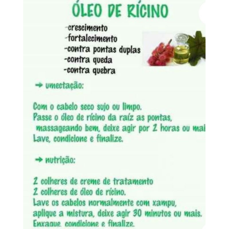 Óleo de Rícino 100% puro extração natural 100ml hidratação capilar, pontas duplas