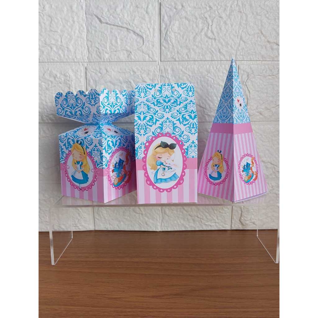Kit Alice no pais das Maravilhas Caixa Milk, Meia Bala e Cone Exclusivo Pegue e Monte Festa Fácil