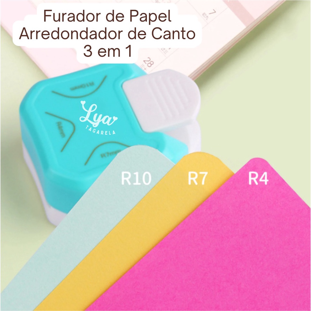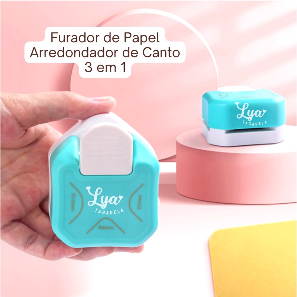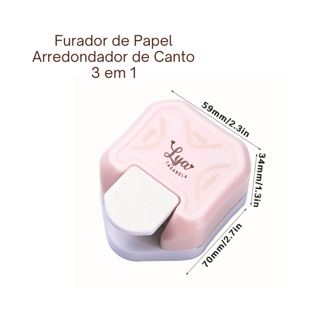 Furador Arredondador De Canto - Cantoneira Papel - 3 Em 1 Rosa e Branco ou Rosa Pink