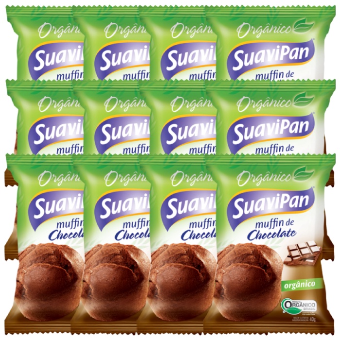 Muffin De Chocolate Orgânico Suavipan Contendo 12 Unidades De 40g Cada