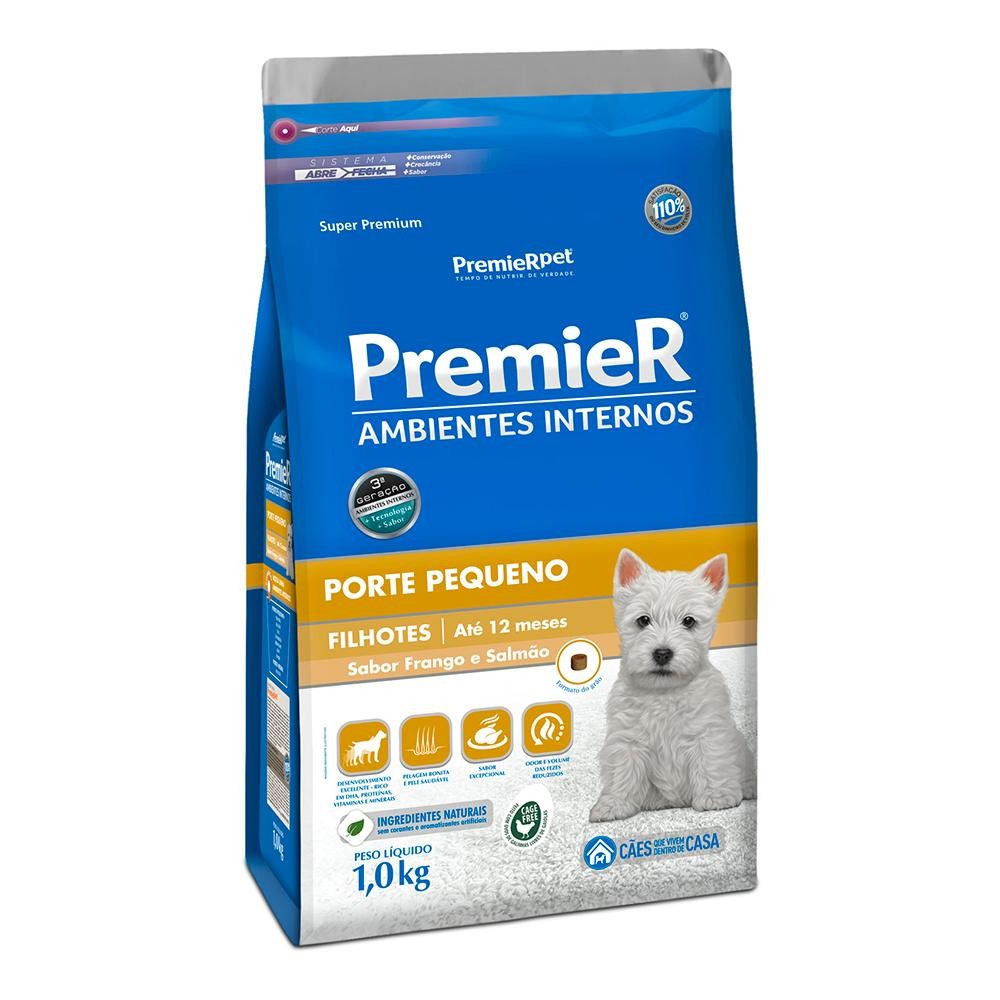Ração Seca Premier Ambientes Internos Frango E Salmão Para Cães Filhotes