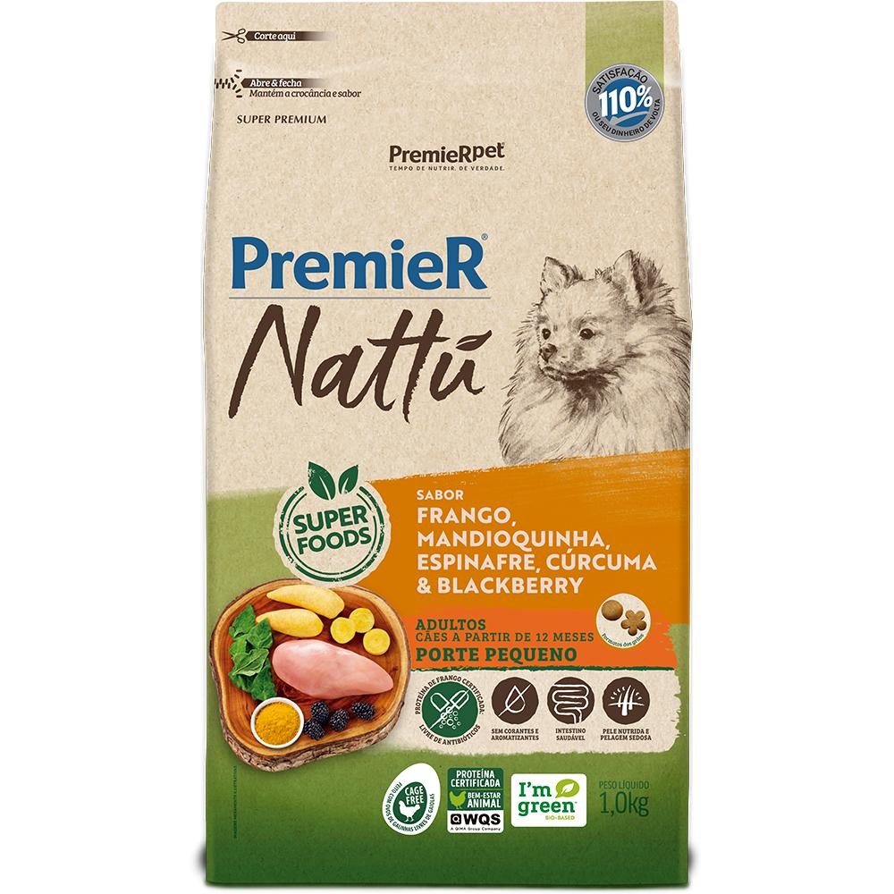 Ração Seca Premier Nattú Frango, Mandioquinha, Espinafre, Cúrcuma & Blackberry Para Cães Adultos Porte Pequeno