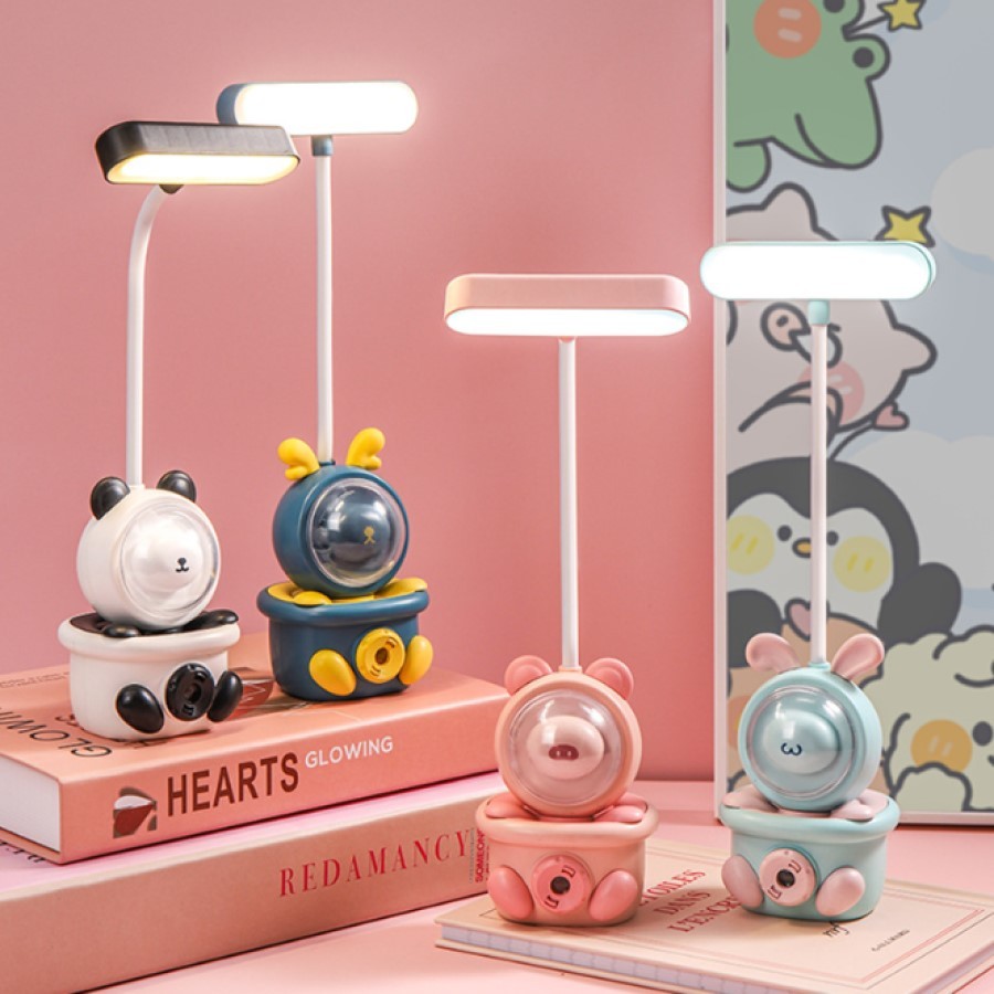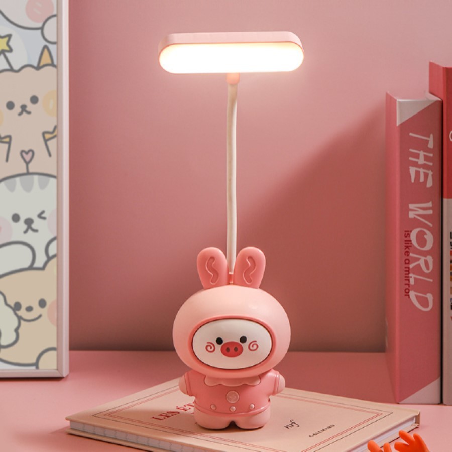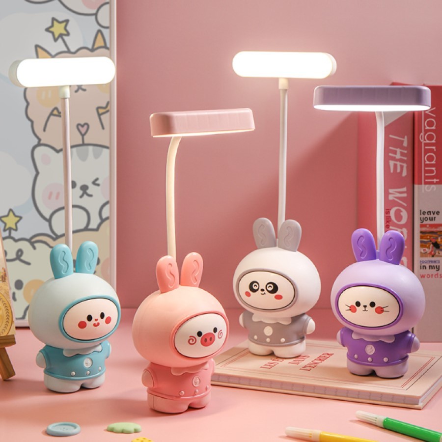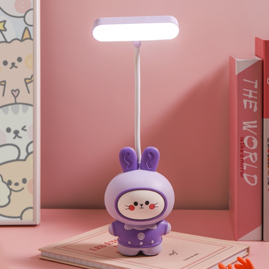 Luminária Abajur De Mesa Infantil Coelho Fofo Luz Led Usb Portátil Com Apontador De Lapis