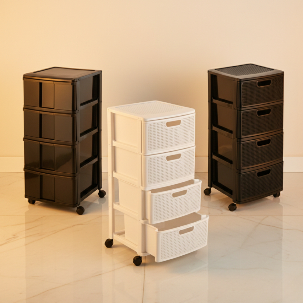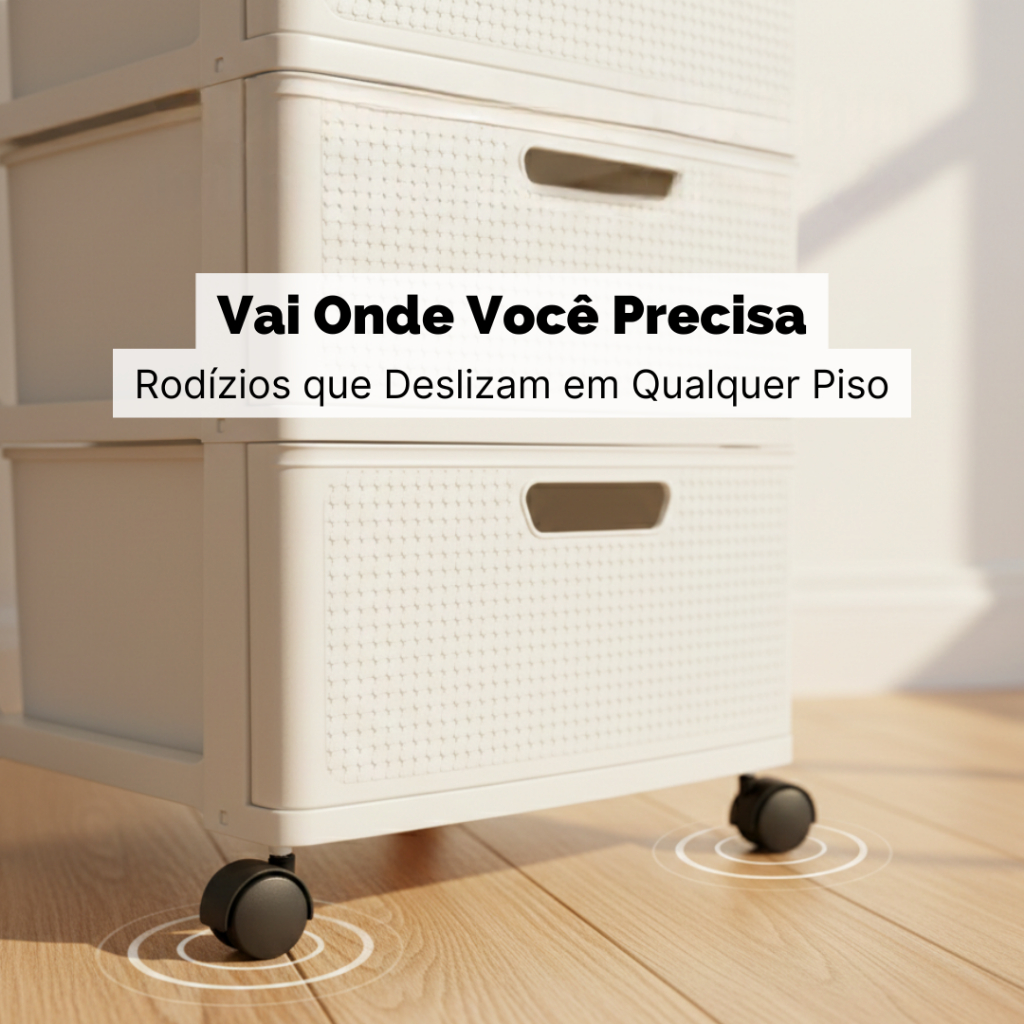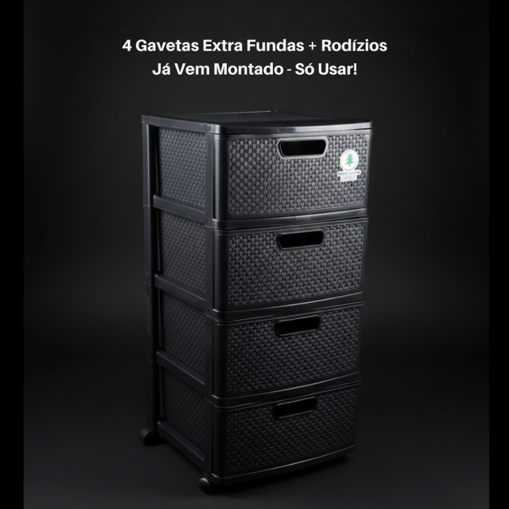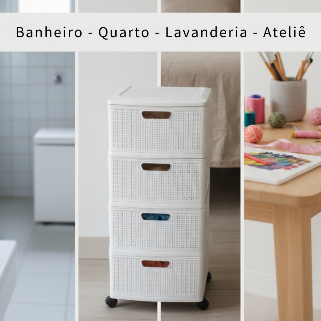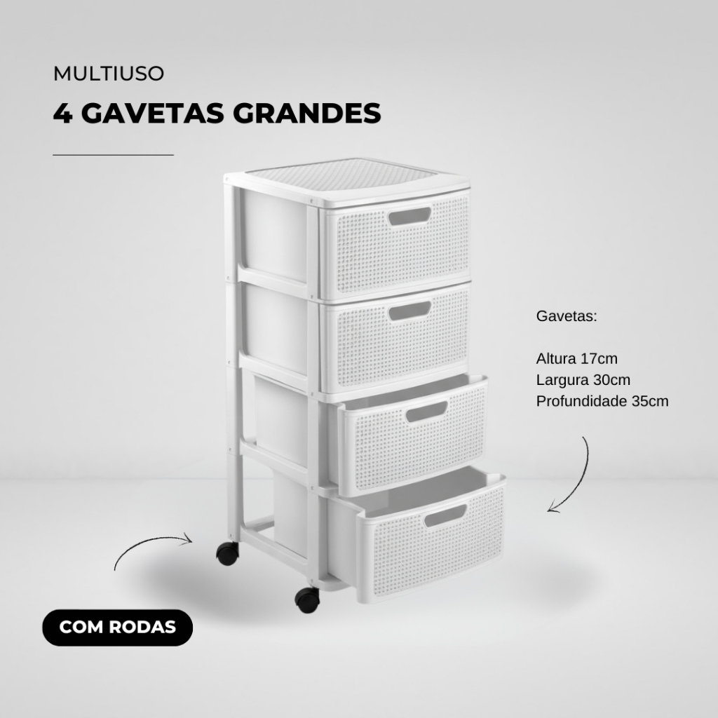 Gaveteiro Porta Tudo com Rodas Grande e 4 Gavetas Rattan Monte Líbano