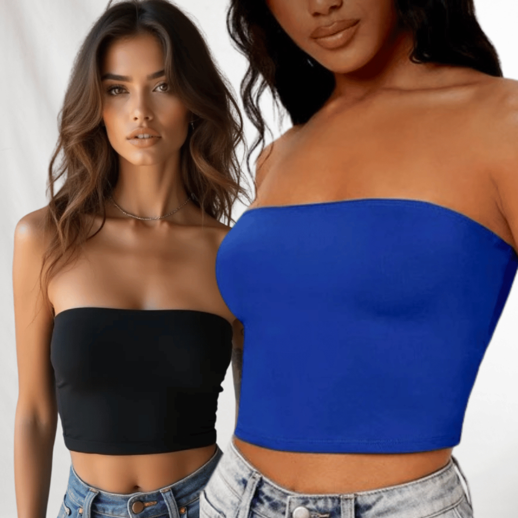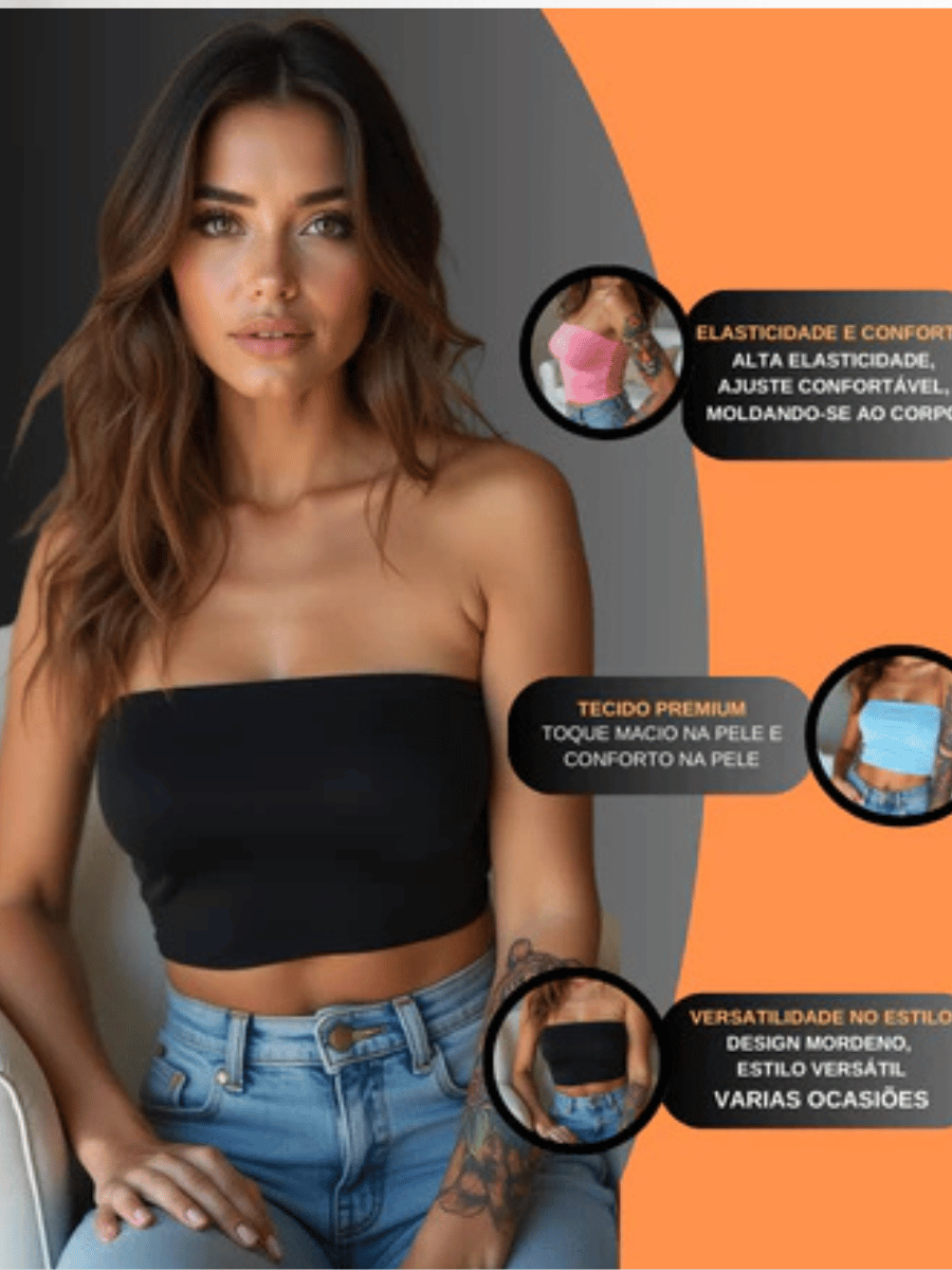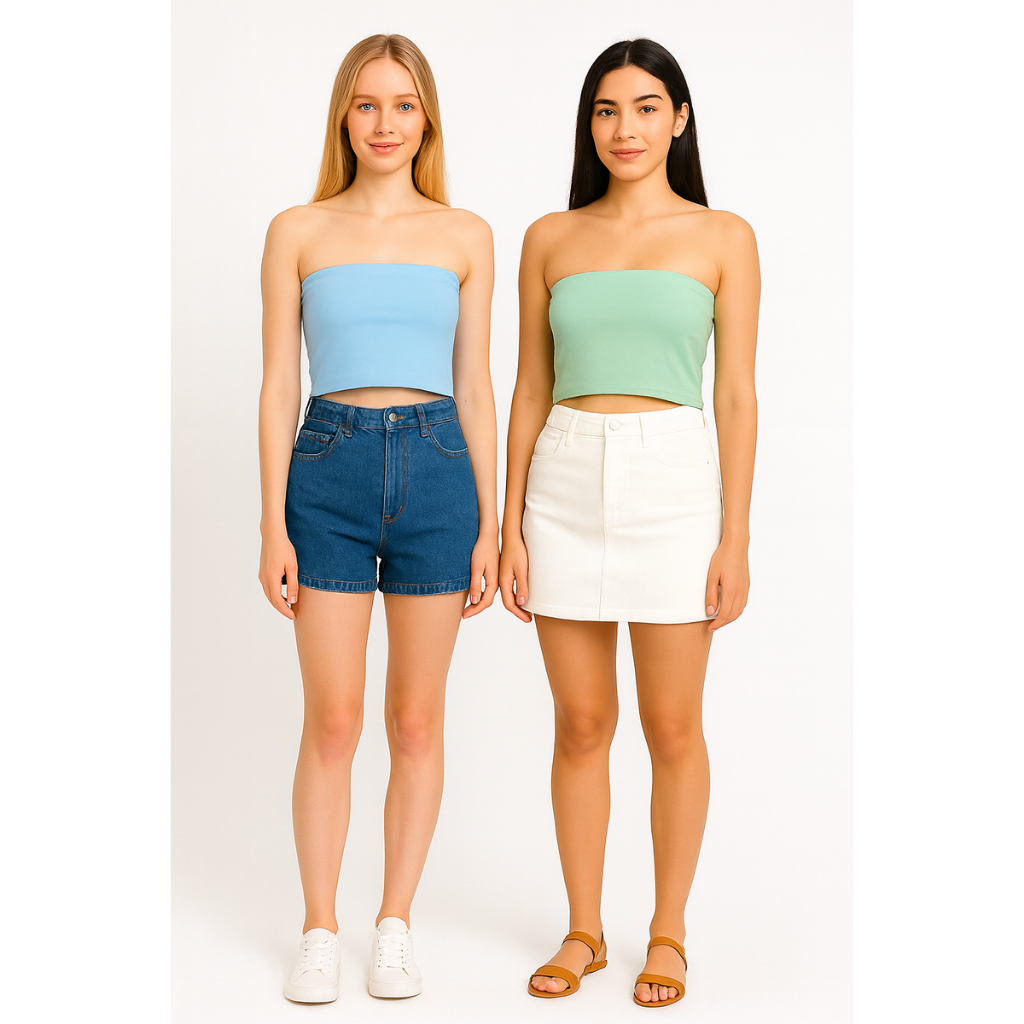 Kit 2 Cropped Top Faixa Tomara Que Caia Liso Suplex Basico Faixa Tubinho Casual