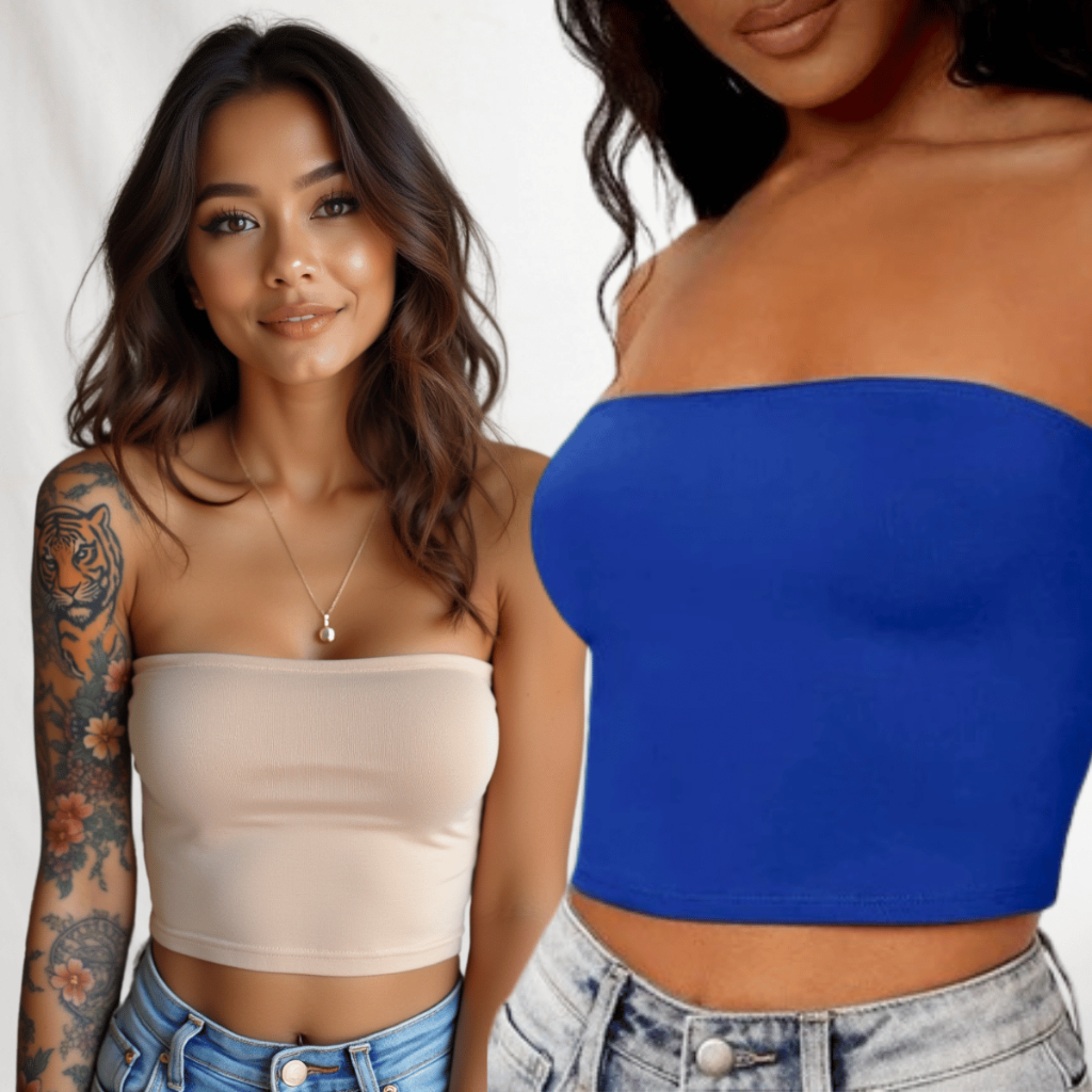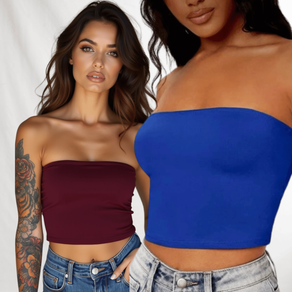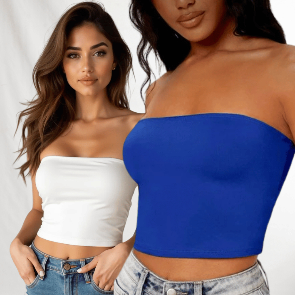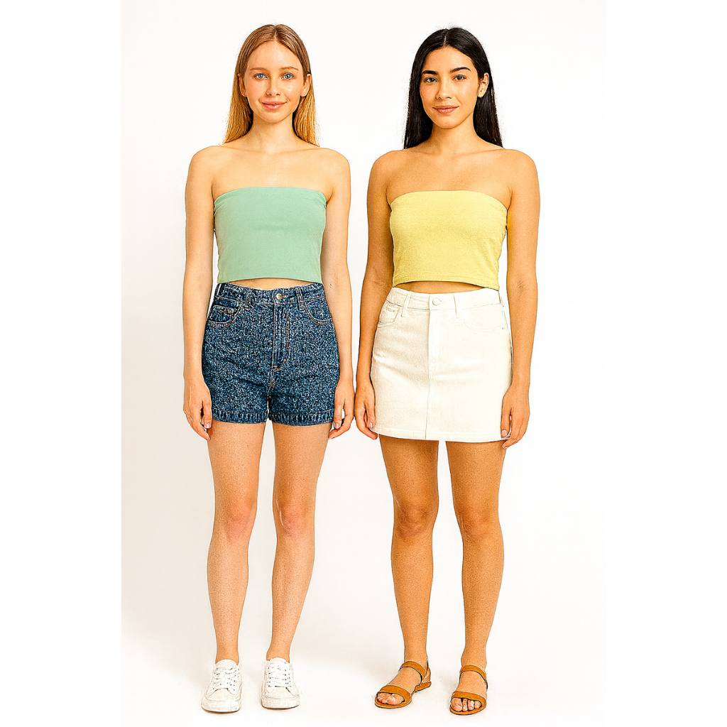 Kit 2 Cropped Top Faixa Tomara Que Caia Liso Suplex Basico Faixa Tubinho Casual