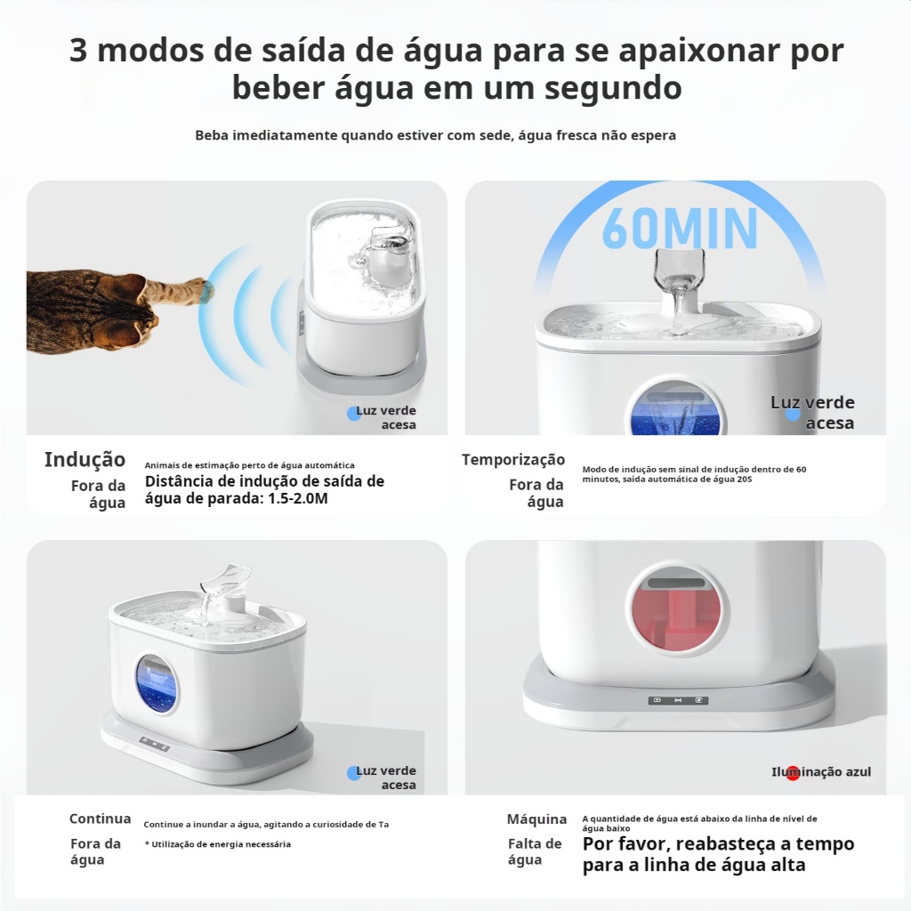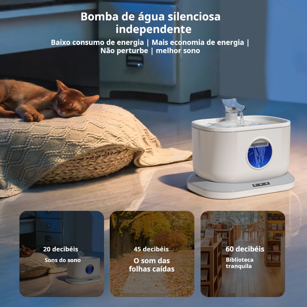 Bebedouro Inteligente com Sensor para Gatos e Cachorros, Dispensador de Água Automático, Fonte de Água Silenciosa