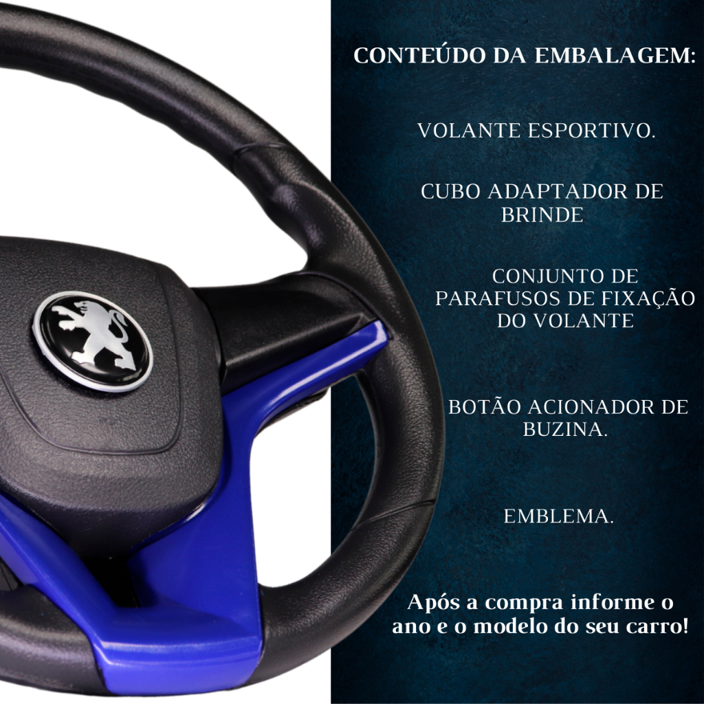 Volante Esportivo cruze azul para peugeot 106/206/306 308