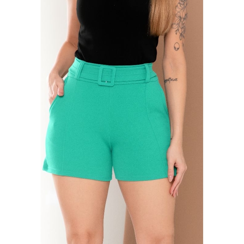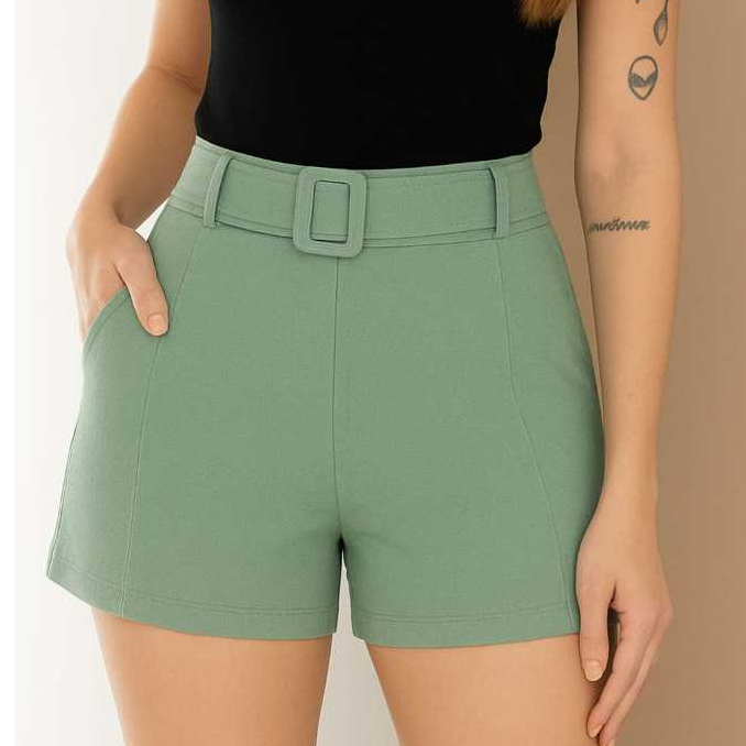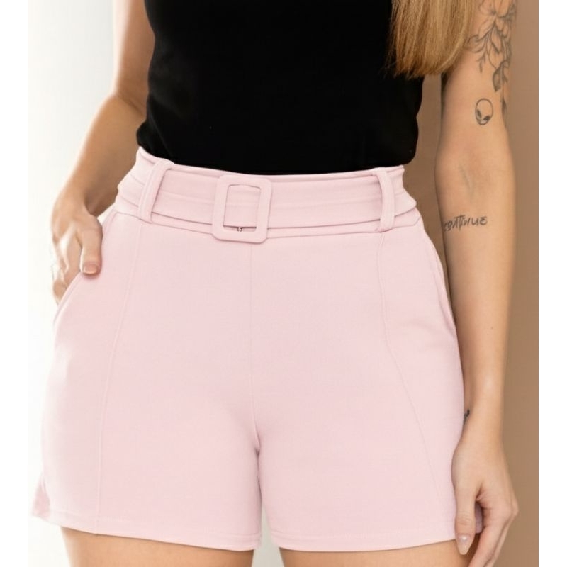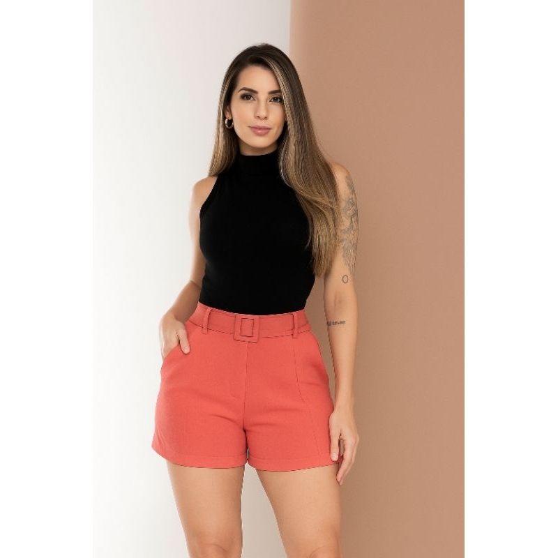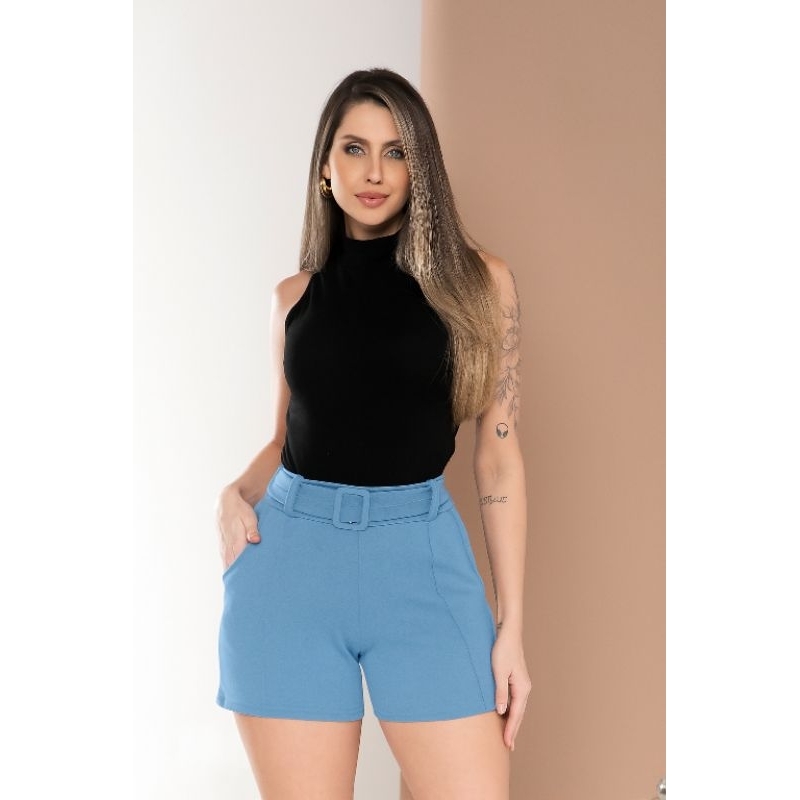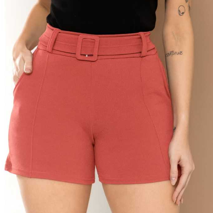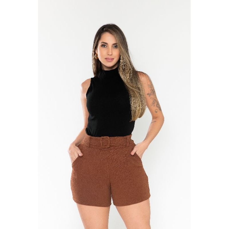 SHORT FEMININA LYCRA CINTURA ALTA BOLSO NA FRENTE FIVELA ENCAPADO