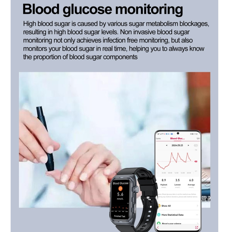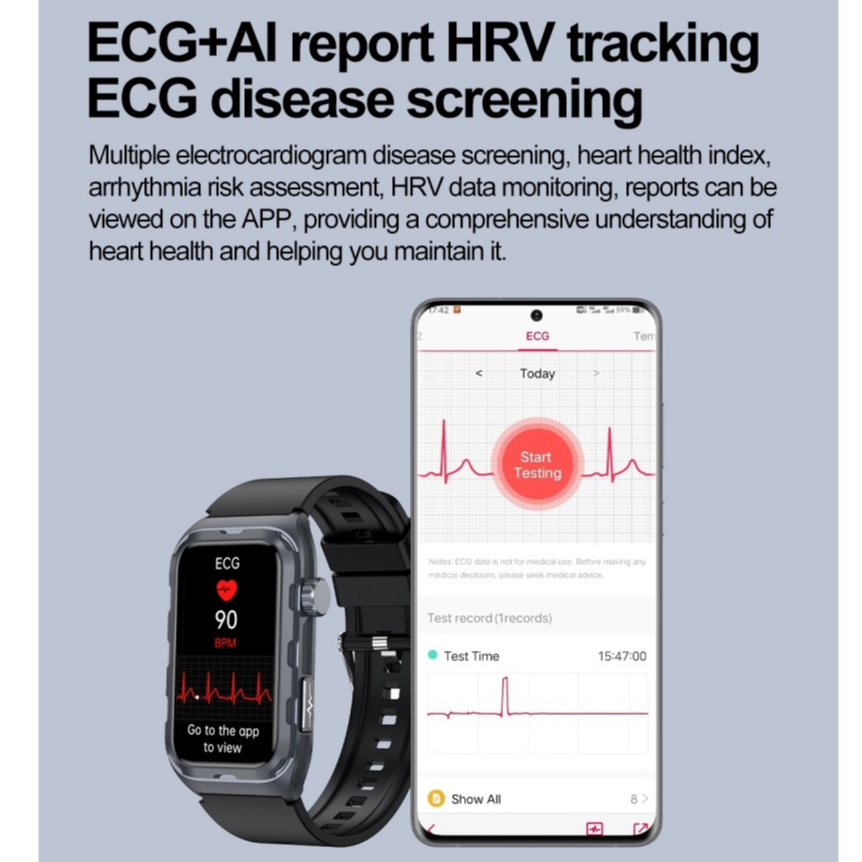2025 Novo ECG Não Invasivo Glicose No Sangue Smartwatch Relógio Inteligente AMOLED Terapia De Pulso Monitoramento De Saú
