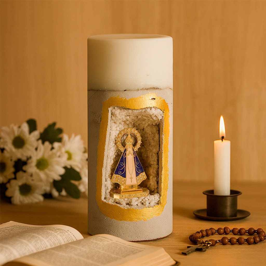 Vela Aromática Decorativas Aromatizada Perfumada Artesanal Nossa Senhora De Aparecida Cera De Soja
