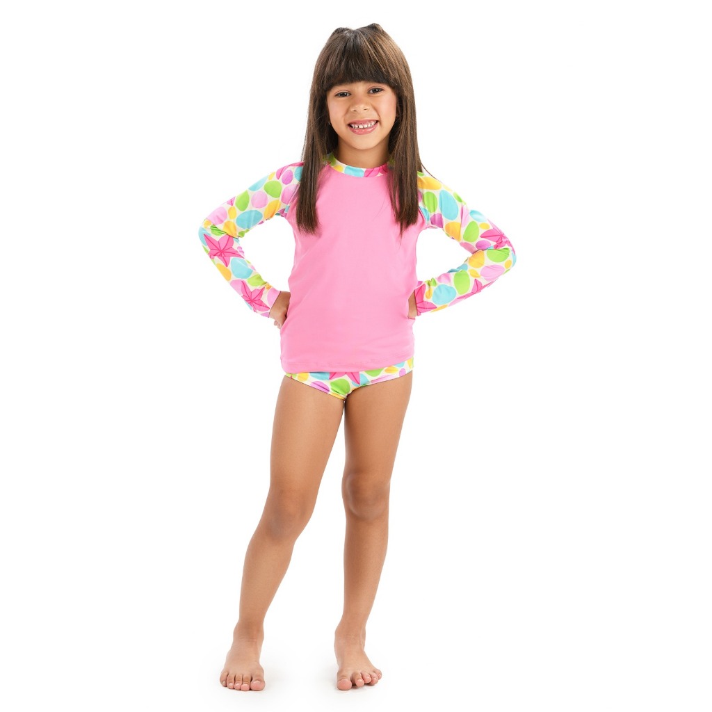 Conjunto Infantil Camiseta + Biquini Menina Bebe Com Proteção UV50 Praia Piscina