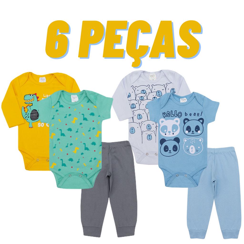 Kit Roupa De Bebe 6 Peças Body Manga Longa E Mijão Algodão Conjunto Bebê