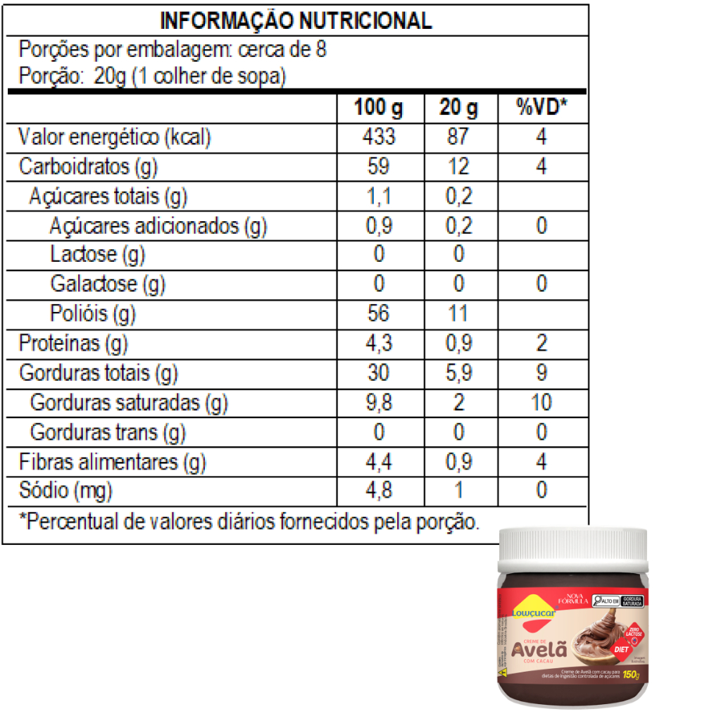 Creme De Avelã Com Cacau Lowçucar Zero Açucares 150G