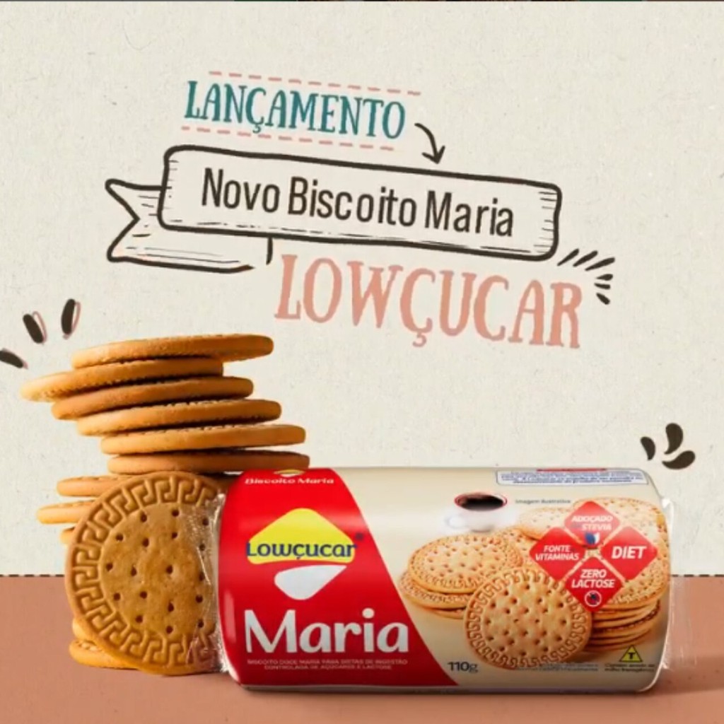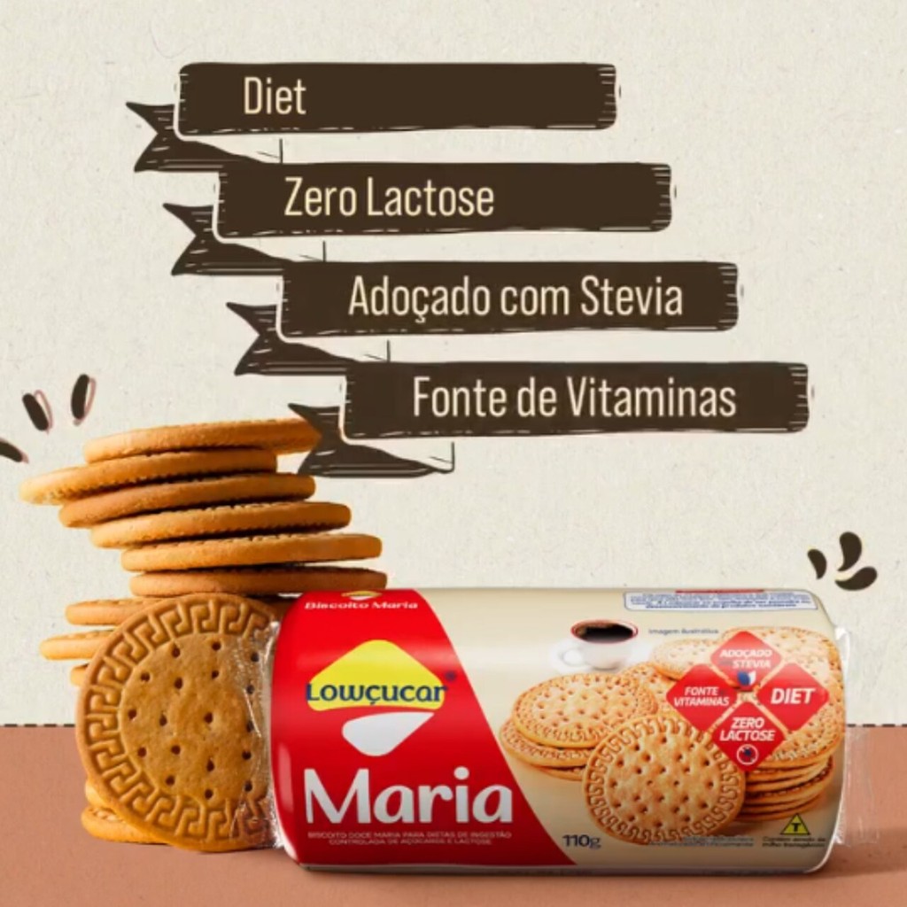 Kit com 3 unid. Biscoito Maria Lowçucar Zero Adição de Açúcares 110G