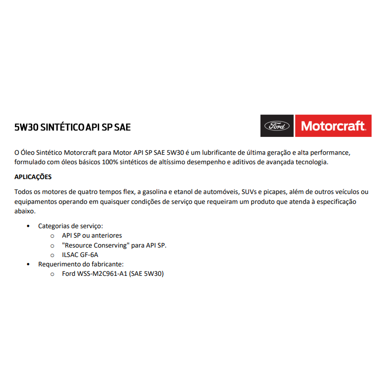 Kit 5 litros De Óleo 5w30 Sintético+Filtro Óleo FORD Ecosport/Fiesta/Focus/Novo Focus/Ka/ew Fiesta