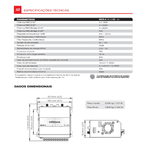 Modulo Amplificador Soundigital 800.4 Evo 6 4 Canais Cor Preto 4 ohms em bridge