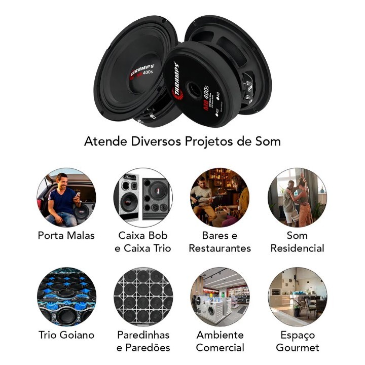 Alto Falante 6 Polegadas Taramps Mb 400s Medio Grave Agudo 200w RMS 400 watts Programa Musical Woofer 400w Paredão Trio