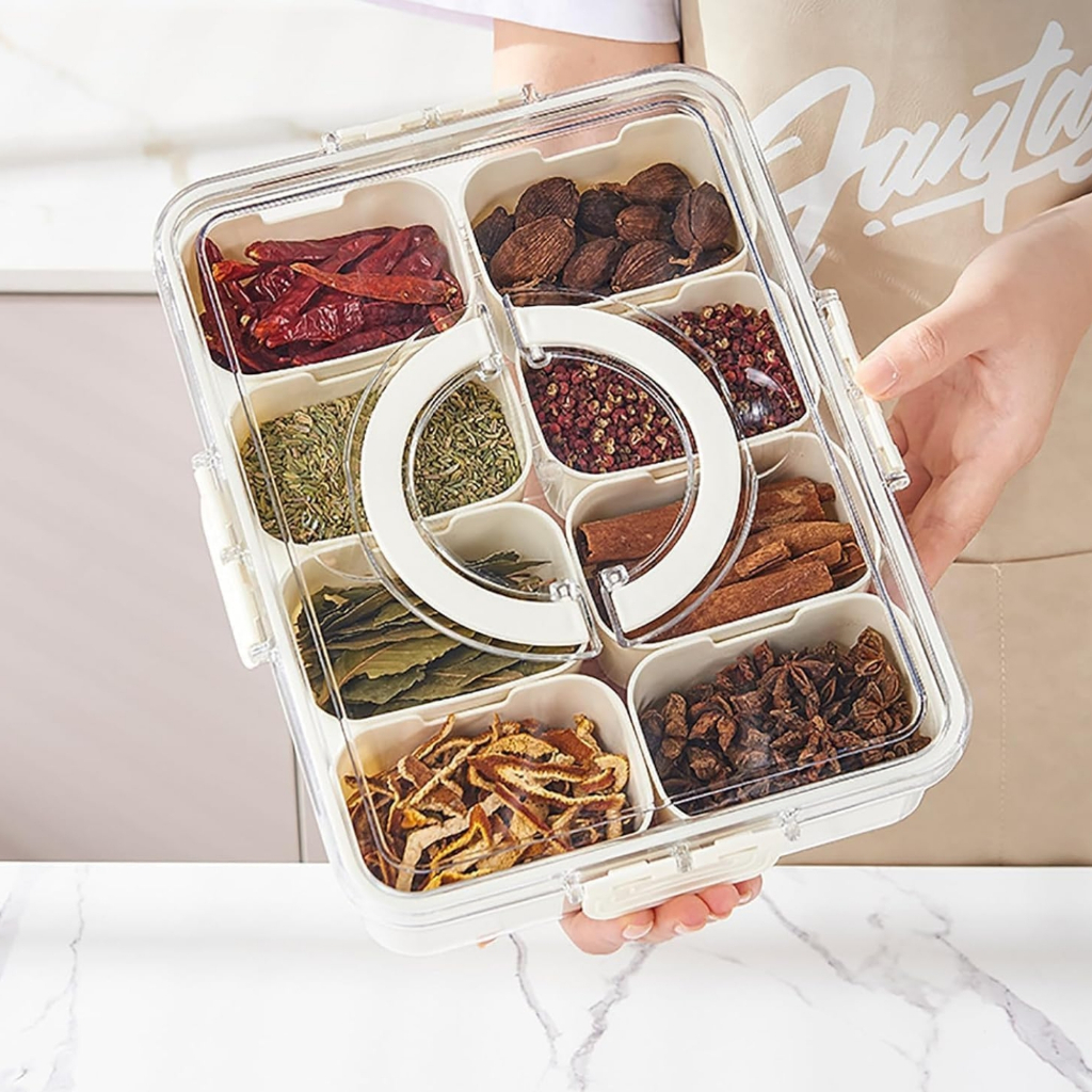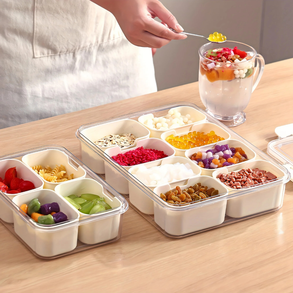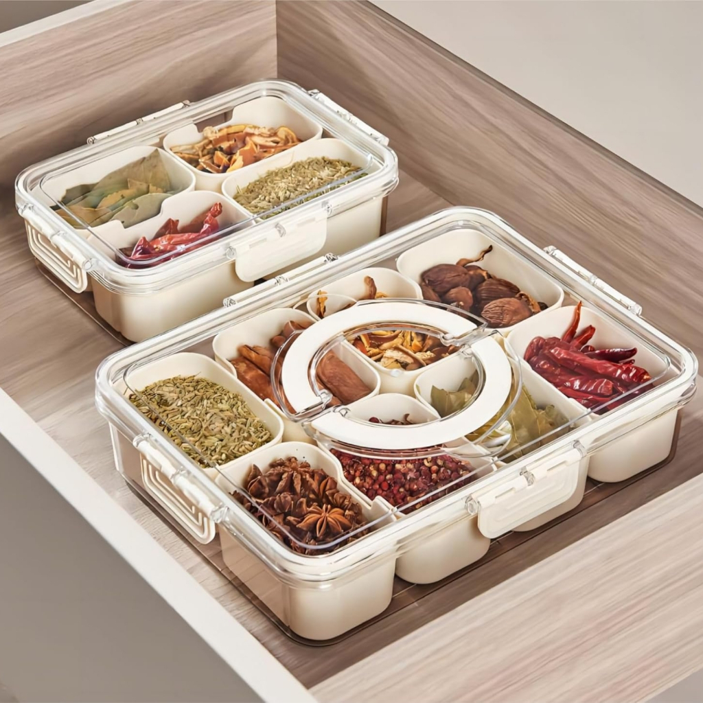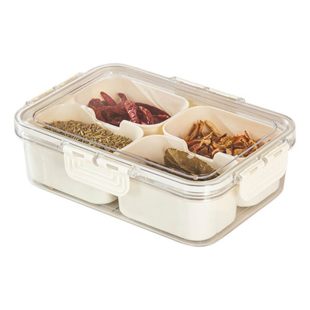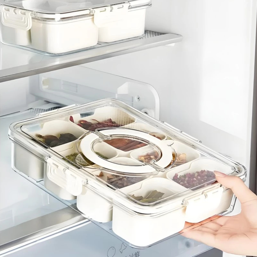 Organizador de Geladeira Caixa Multiuso para Temperos e Especiarias Divisórias Removíveis com Tampa