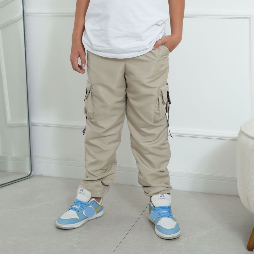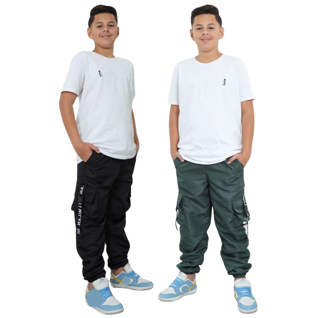 KIT 2 Calça Infantil Moda Masculina Menino Tactel Jogger Blogueiro Bolsos Cargo Fita Moda Gringa Europa T