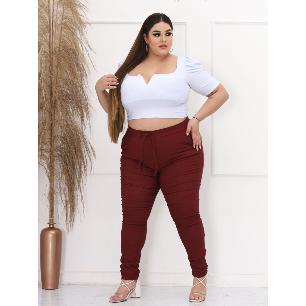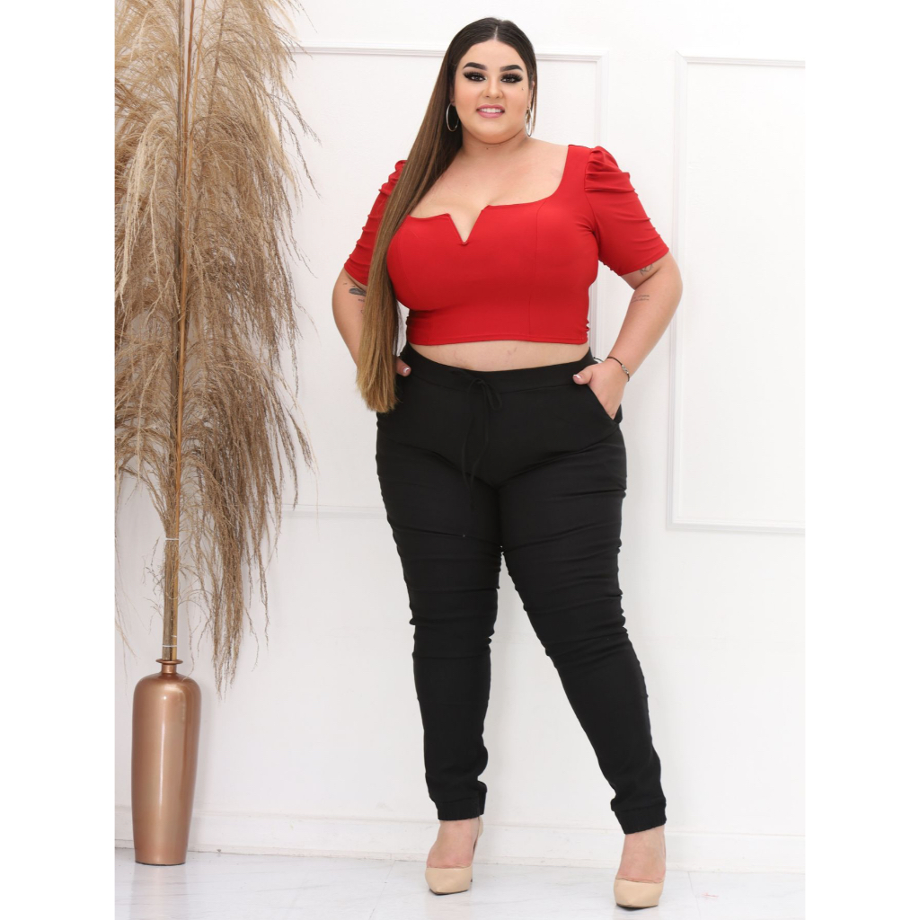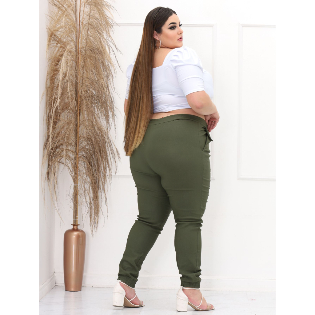 Calças Feminina Jogger Plus Size Tamanho Grande G1 G2 G3 G4 Serve 42 ao 52 Tecido Bengaline Moda Plus Gordinhas