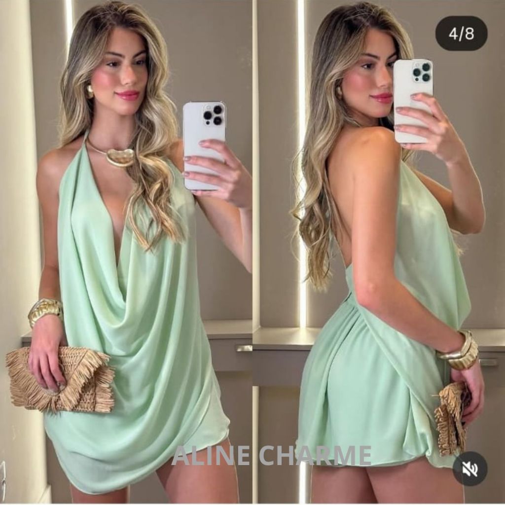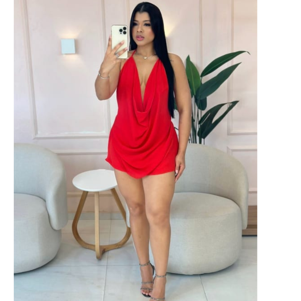 Conjunto Feminino Blusa Frente Única Decote Profundo + Short Saia Drapeado – Look Sexy Elegante para Festa e Balada