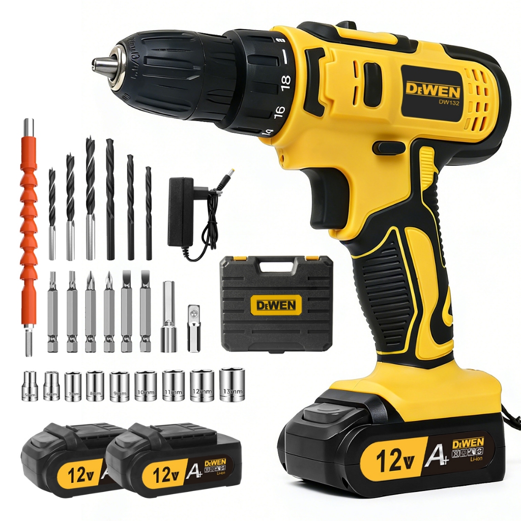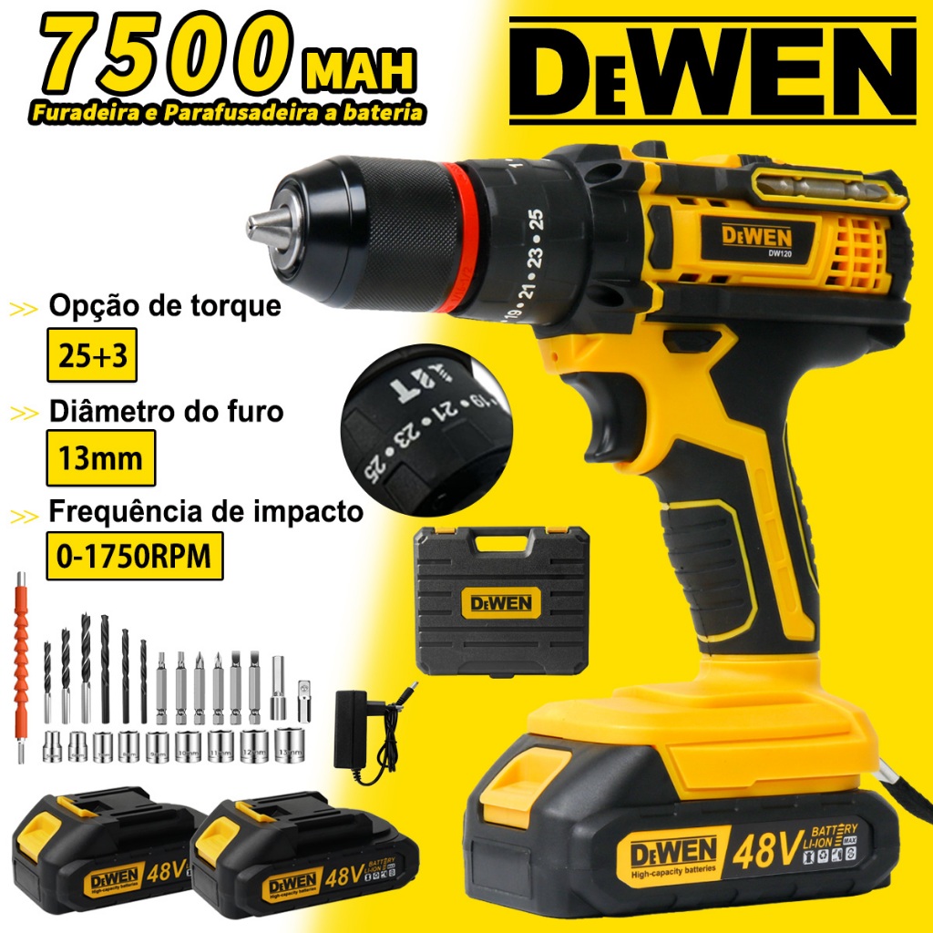 Parafusadeira Furadeira de Elétrica Sem Fio Impacto 2Bateria 3 funções Kit Completo Acessórios 28pcs
