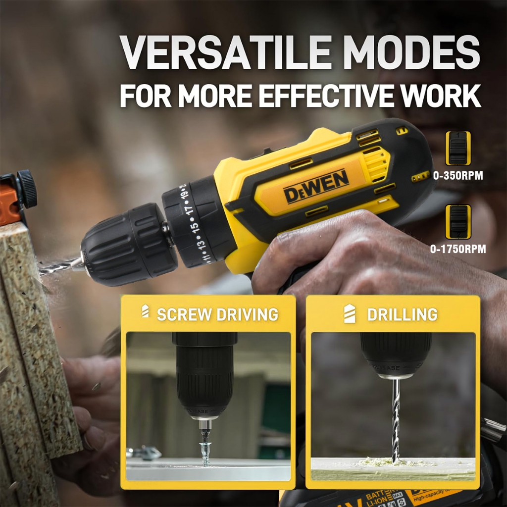 Parafusadeira Furadeira de Impacto Sem Fio Recarregáveis 2 Baterias Com Maleta e Acessórios 28pcs