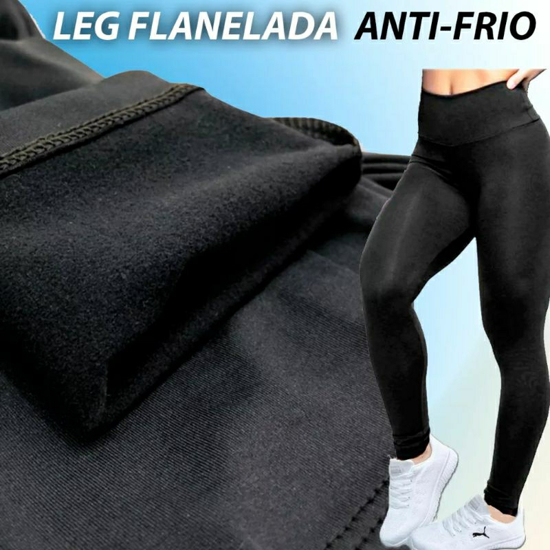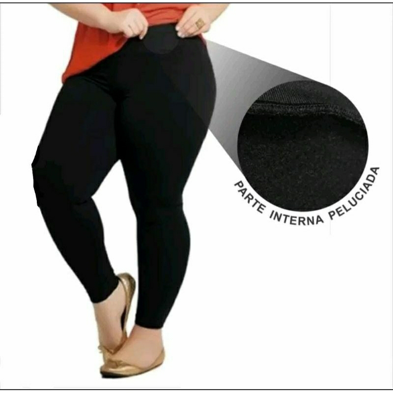 Calça legging flanelada forrada peluciada _ cós alto e confortável _ cintura alta leg térmica