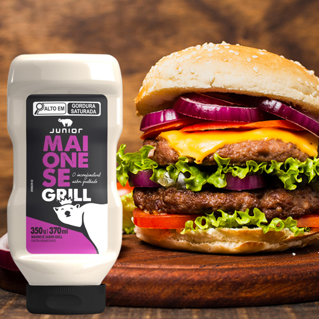 Maionese Grill Defumada Gourmet Cremosa 350g Junior Frasco Food Service Molho Lanches Fritas Snacks