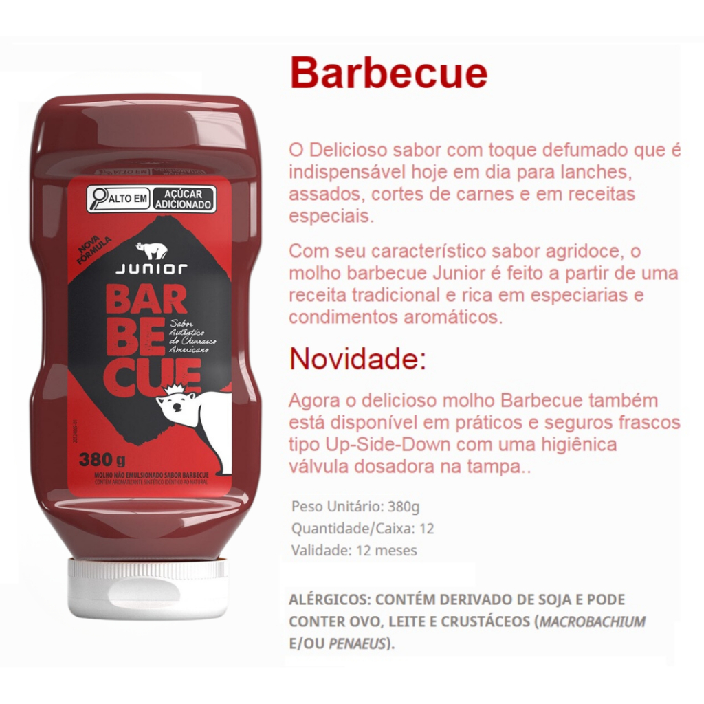Barbecue Gourmet Cremoso Defumado 380g Junior Frasco Food Service Molho Lanches Fritas Snacks