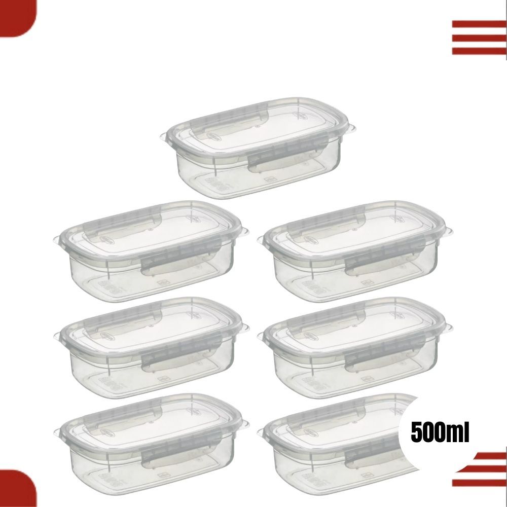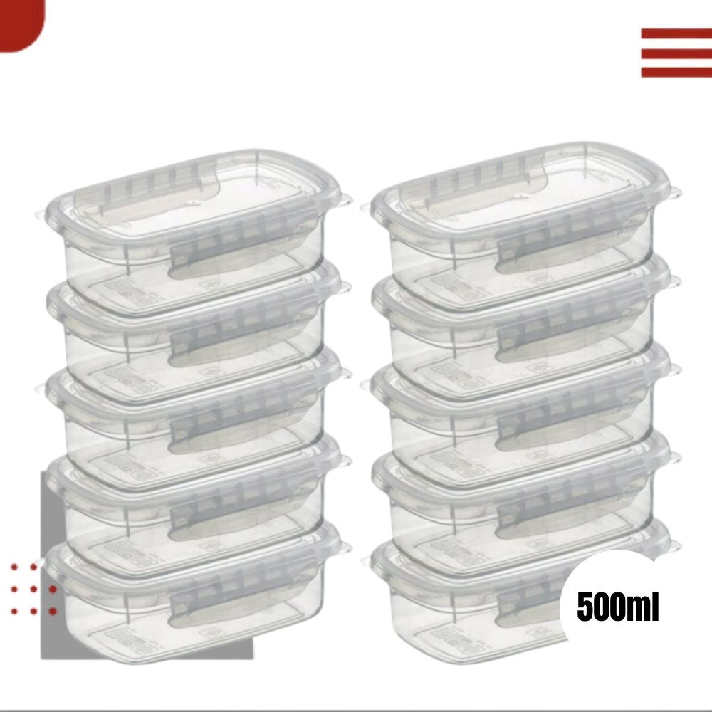 Kit Marmitas Fitness 500ml Para Freezer E Microondas Potes Plásticos com Trava Hermético - 5/7/10 Peças