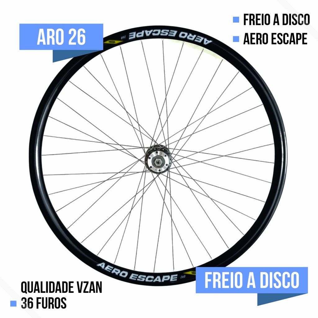 Par de Rodas Freio a Disco Aro 26x1.9 Raio Fino/Cubo Aluminio c/ Blocagem Aero Preto Vzan