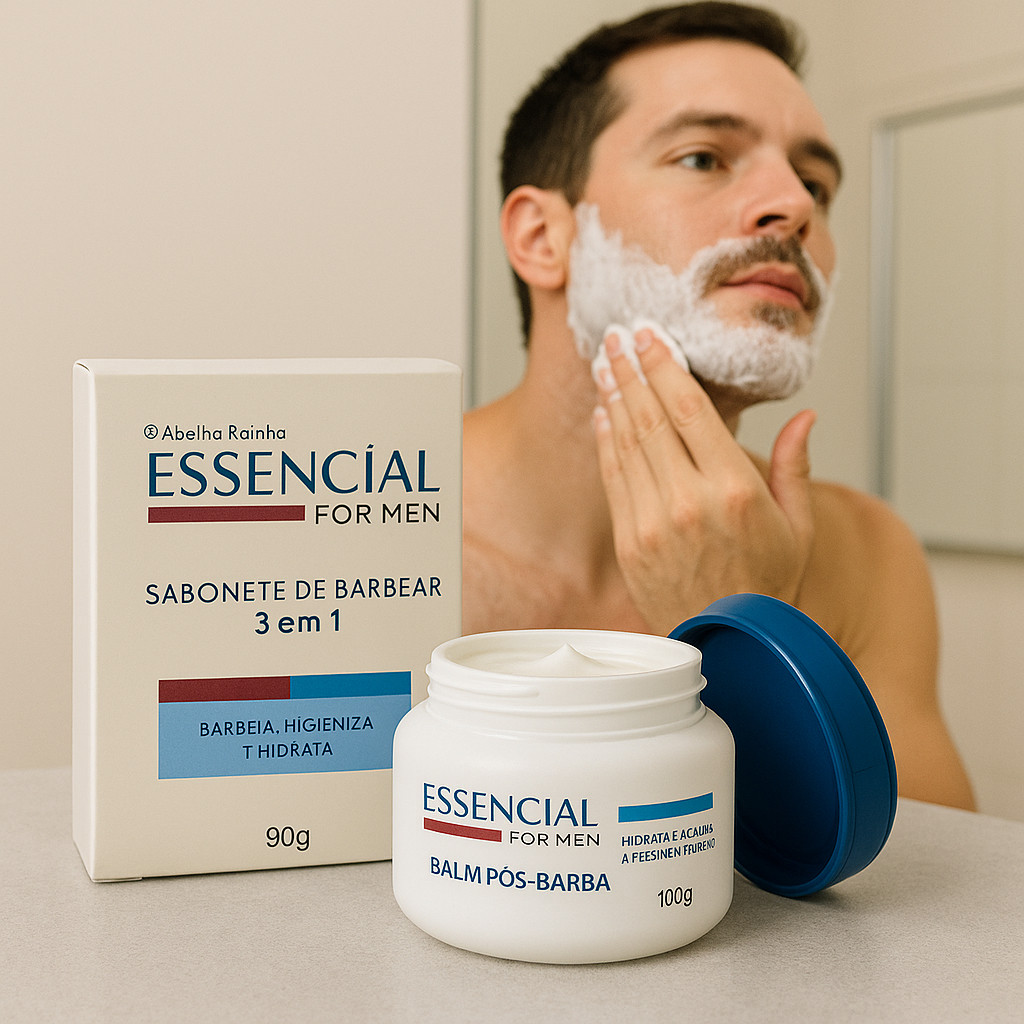 Sabonete de Barbear 3 em 1 E Balm Pós-Barba Proteje Das Irritações Causados Pela a Lâmina Abelha Rainha