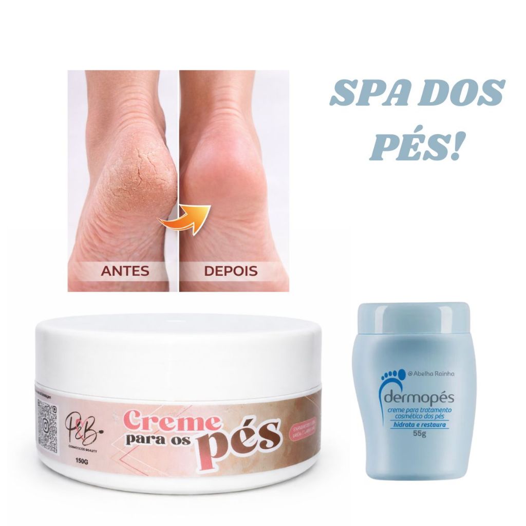 Kit Dermopés Hidrata Restaura Spa dos Pes Rachaduras Previne Ressecamento Afina Ureia Pedreiro Diabeticos Abelha Rainha