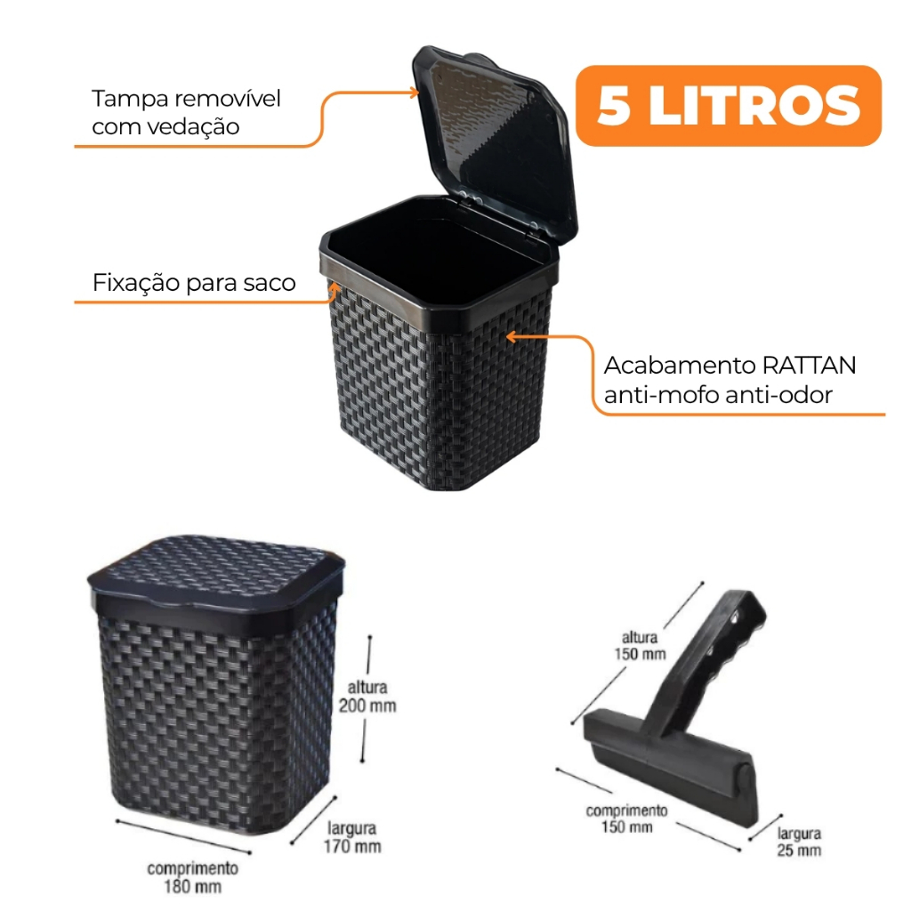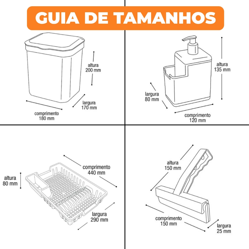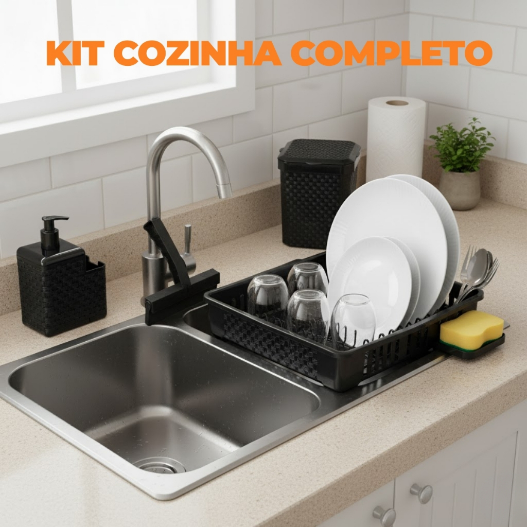 Kit Cozinha Escorredor De Louça + Lixeira de Pia 5 litros + Porta Detergente + Rodinho de Pia