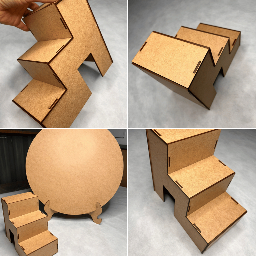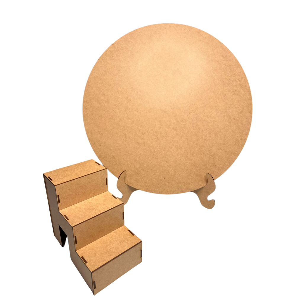 Painel Redondo 50cm MDF Cru com Suporte Kit Decorativo para Festa com Escadinha