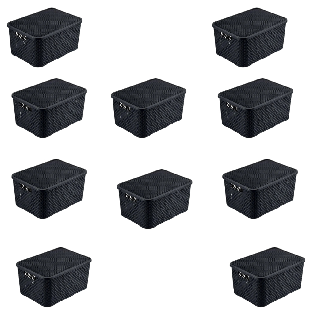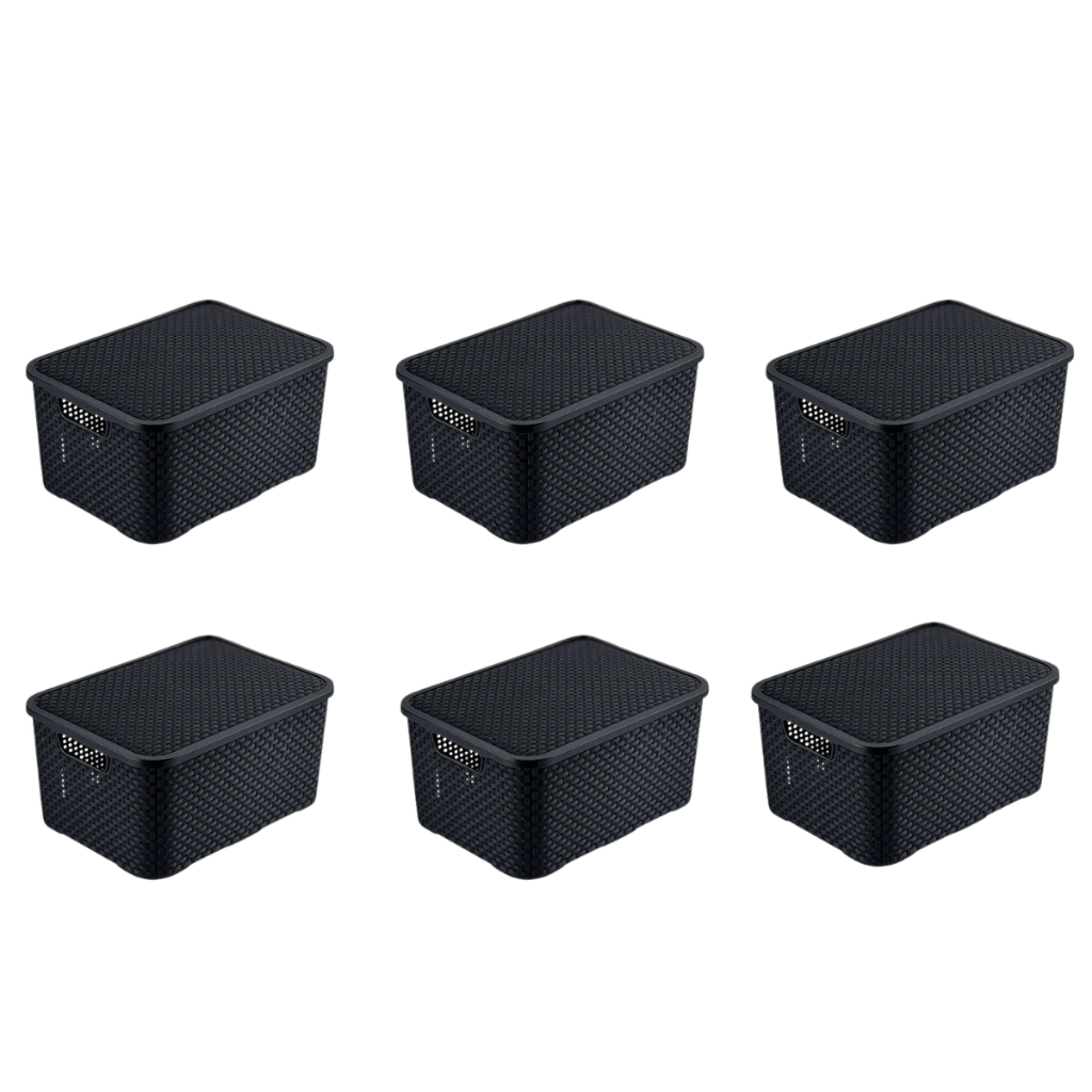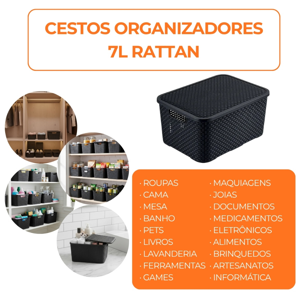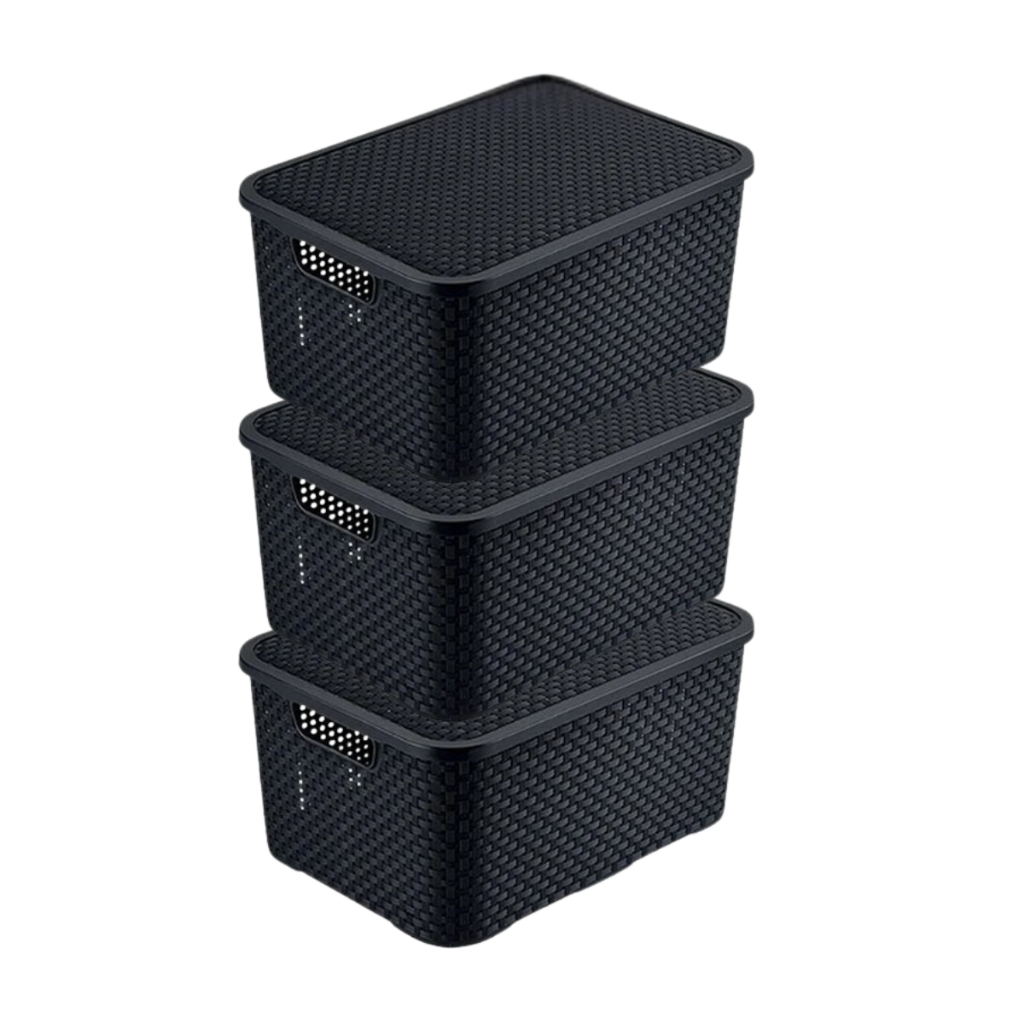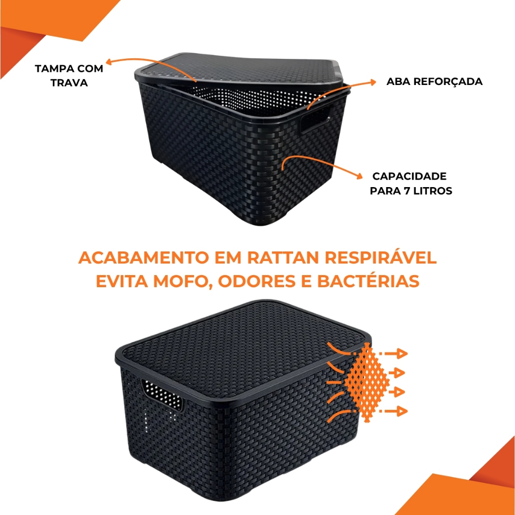 Kit Cesto Caixa Organizadora Rattan 7 Litros Multiuso Preto