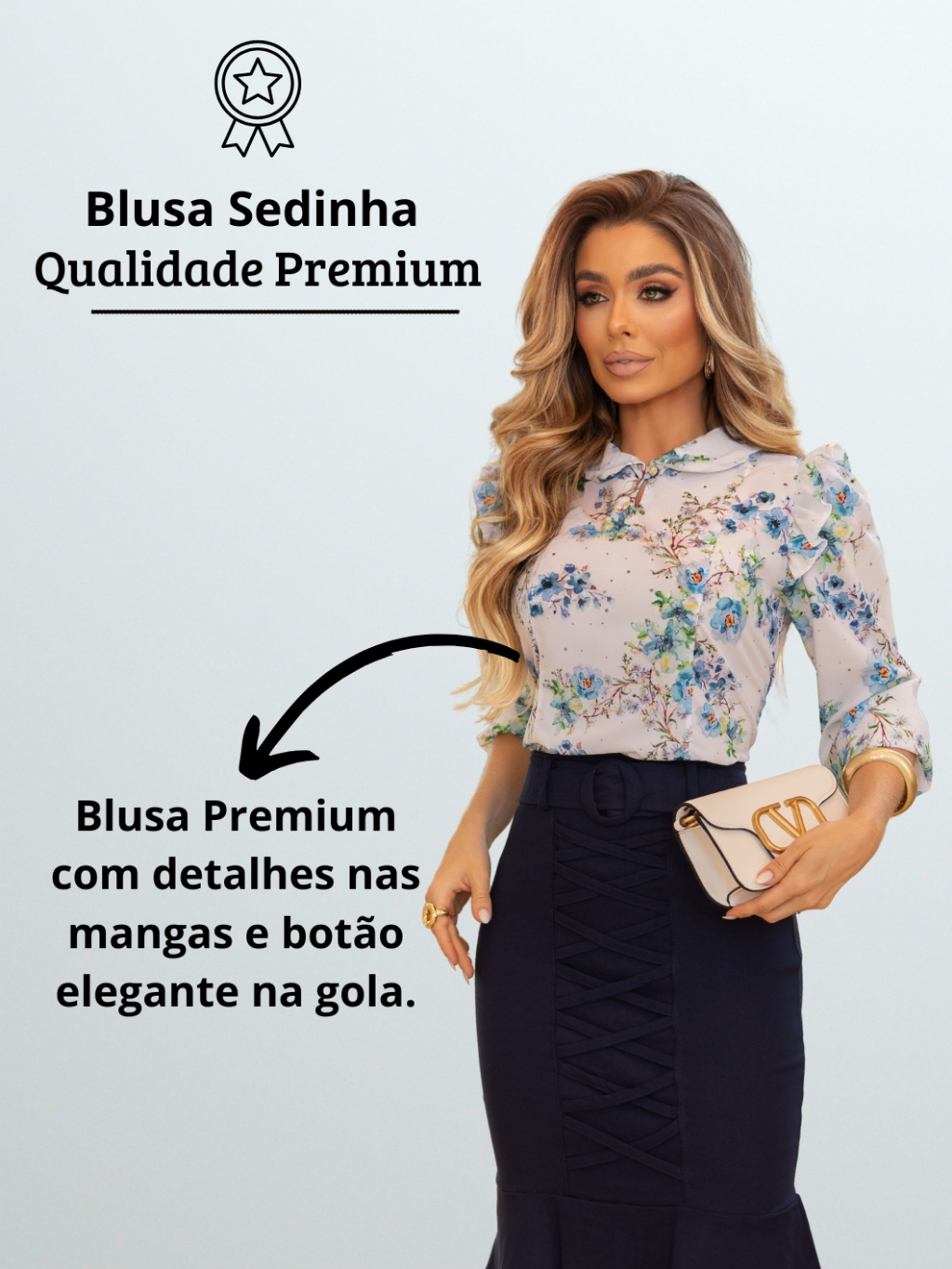 Blusa Manga 3/4 Estampada Comportada Gola Feminina Social Luxo