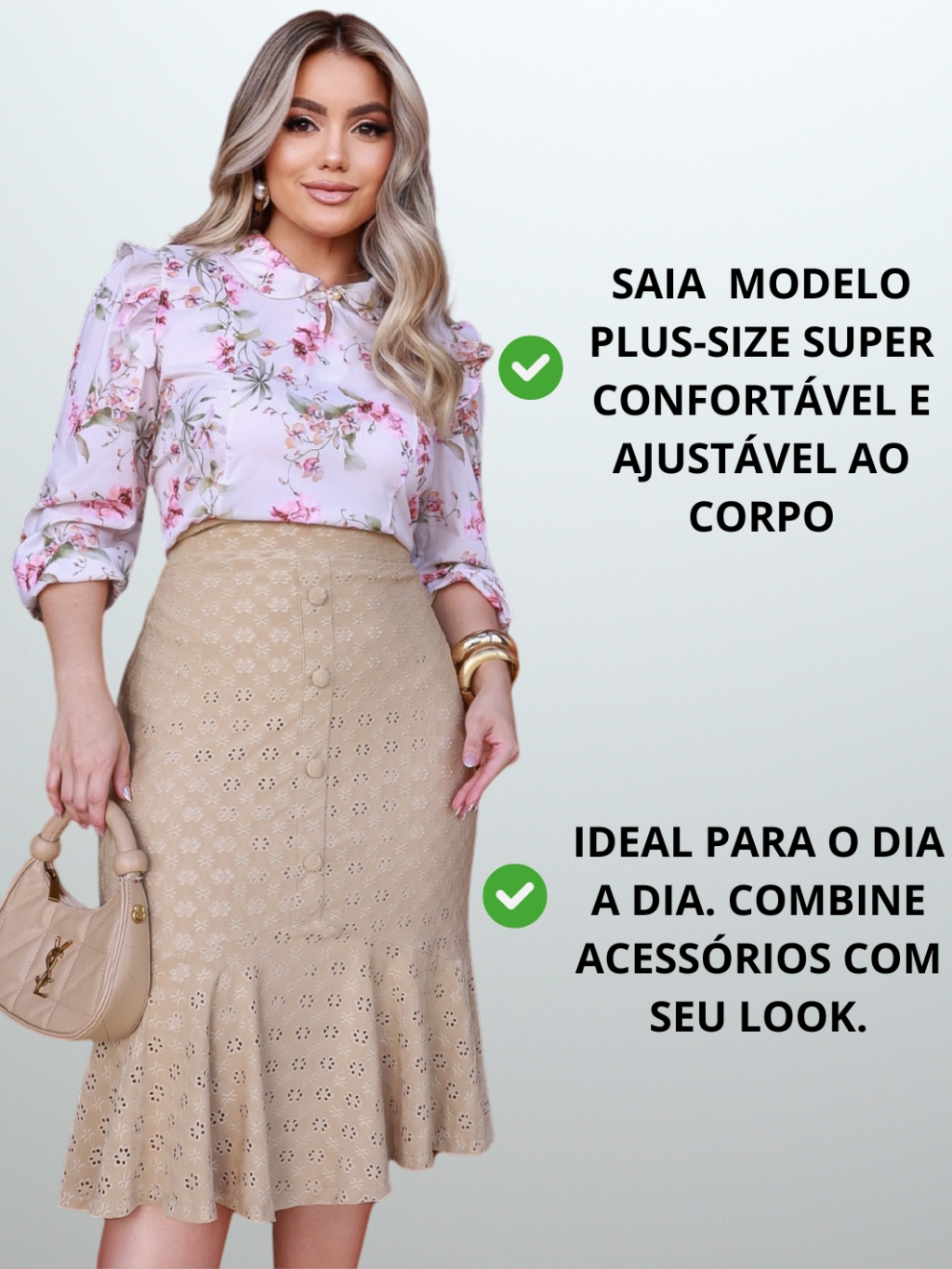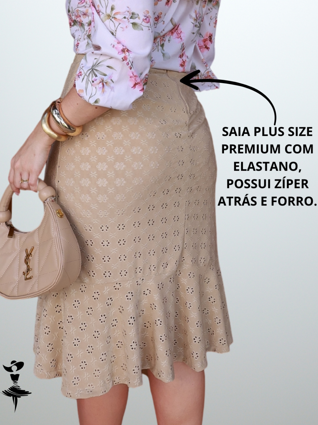 Saia Plus Size Lese Premium Feminina Elegante Evangélica Social Evasê Rodada Forrada com Elastano