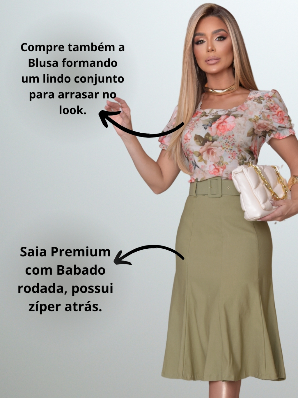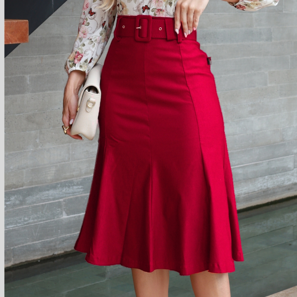 Saia Midi Feminina Rodada Com Cinto Moda Elegante Social Evangélico Executiva