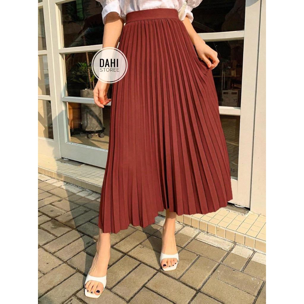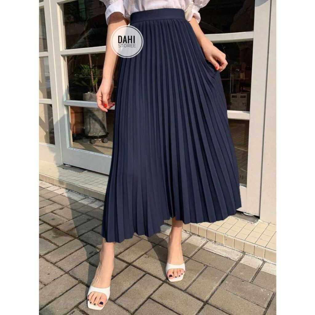 Saia feminina midi plissada lisa longuete cintura alta moda evangélica modesta elegante e casual